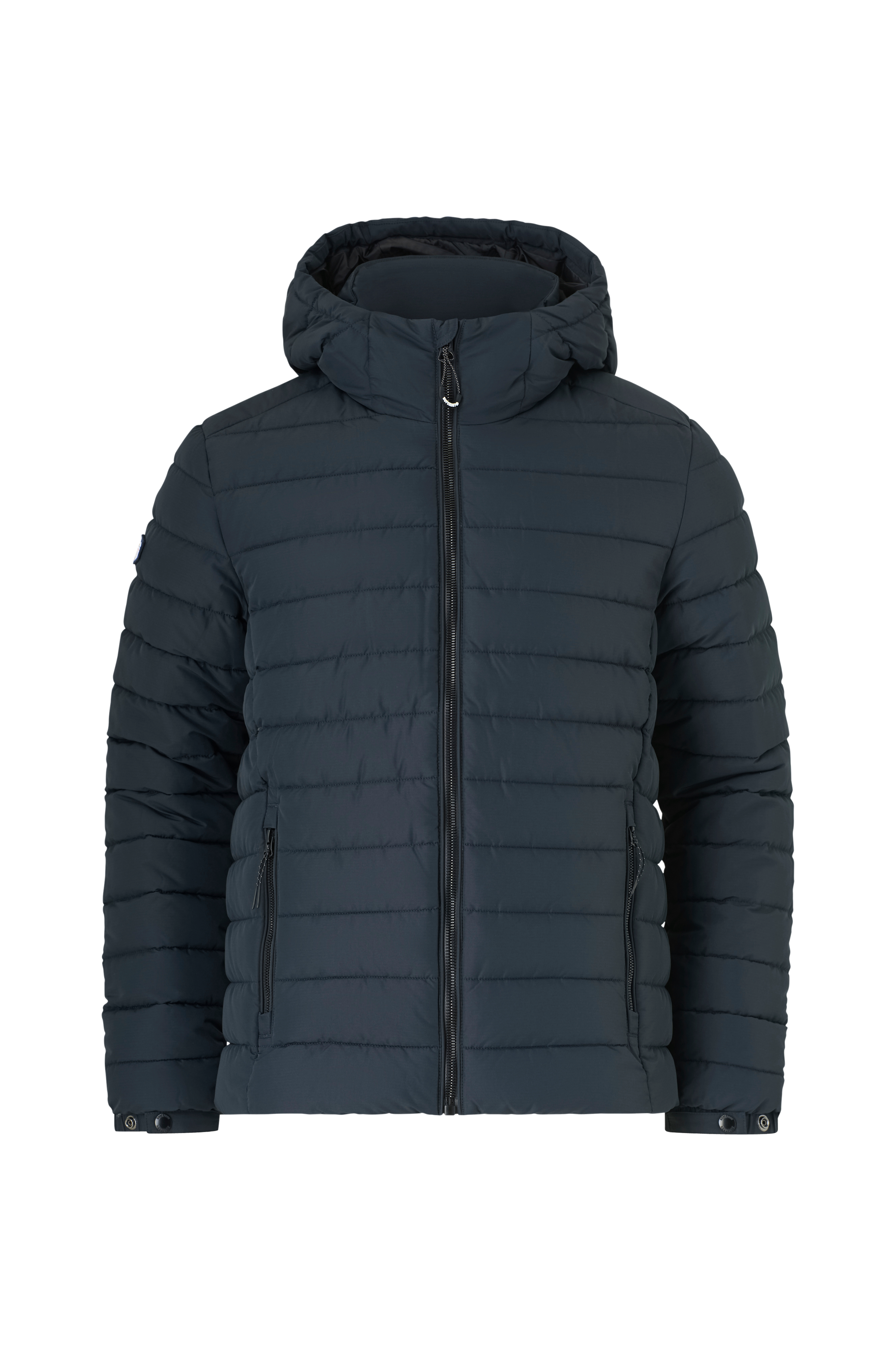 • Vattert, polstre pufferjakke• Tekstilfôr• Fast hette med snøring• Høy krage• Glidelås med høy hals• To glidelåslommer• En innerlomme i mesh• Justerbare, elastiske ermeender• Snøring i nedre kant• Lengde: 66 cm i størrelse M