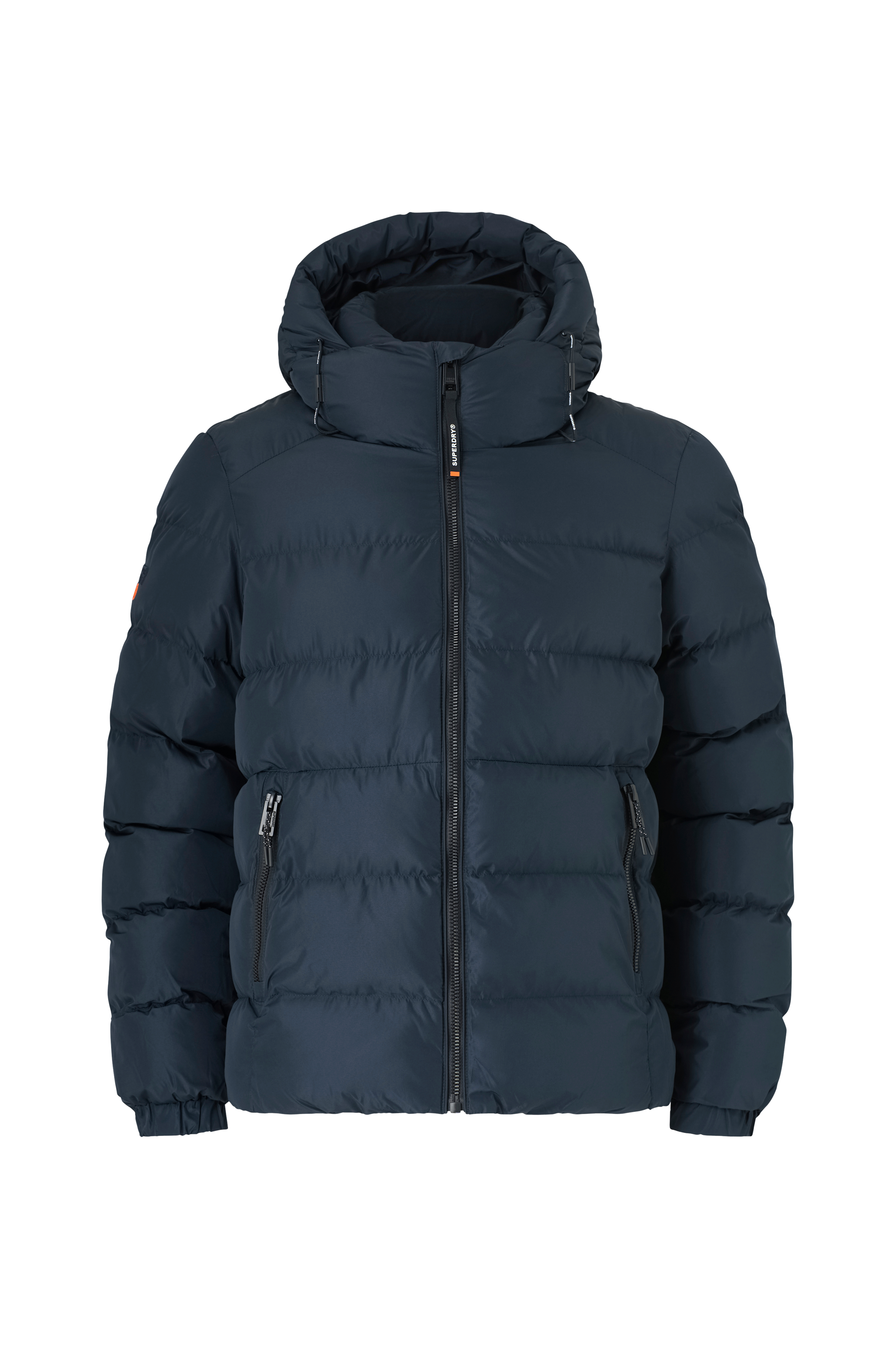 • Vattert, polstre pufferjakke• Mykt fleece-fôr• Fast hette med snøring• Høy krage• Glidelås• To glidelåslommer• En innerlomme i mesh• Gummistrikk i ermeslutten• Snøring i nedre kant• Lengde: 69 cm i størrelse M