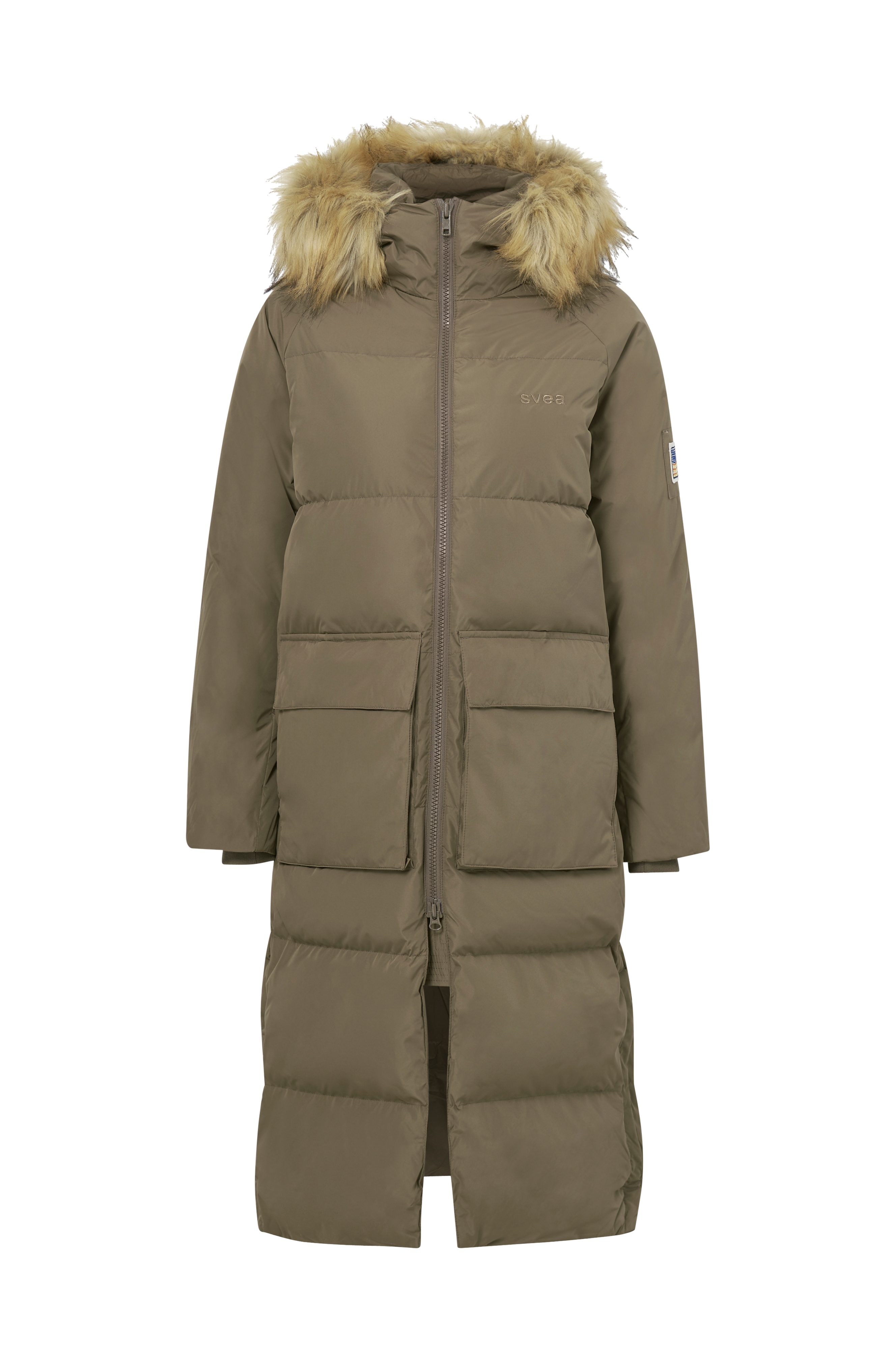 • Rett, polstre modell• To-veis glidelås• Splitt nedover foran• Fire store lommer foran• Fast hette med avtagbar fuskepelsdetalj• Trykknapper nede i sidene• Lengde: 113 cm i størrelse S