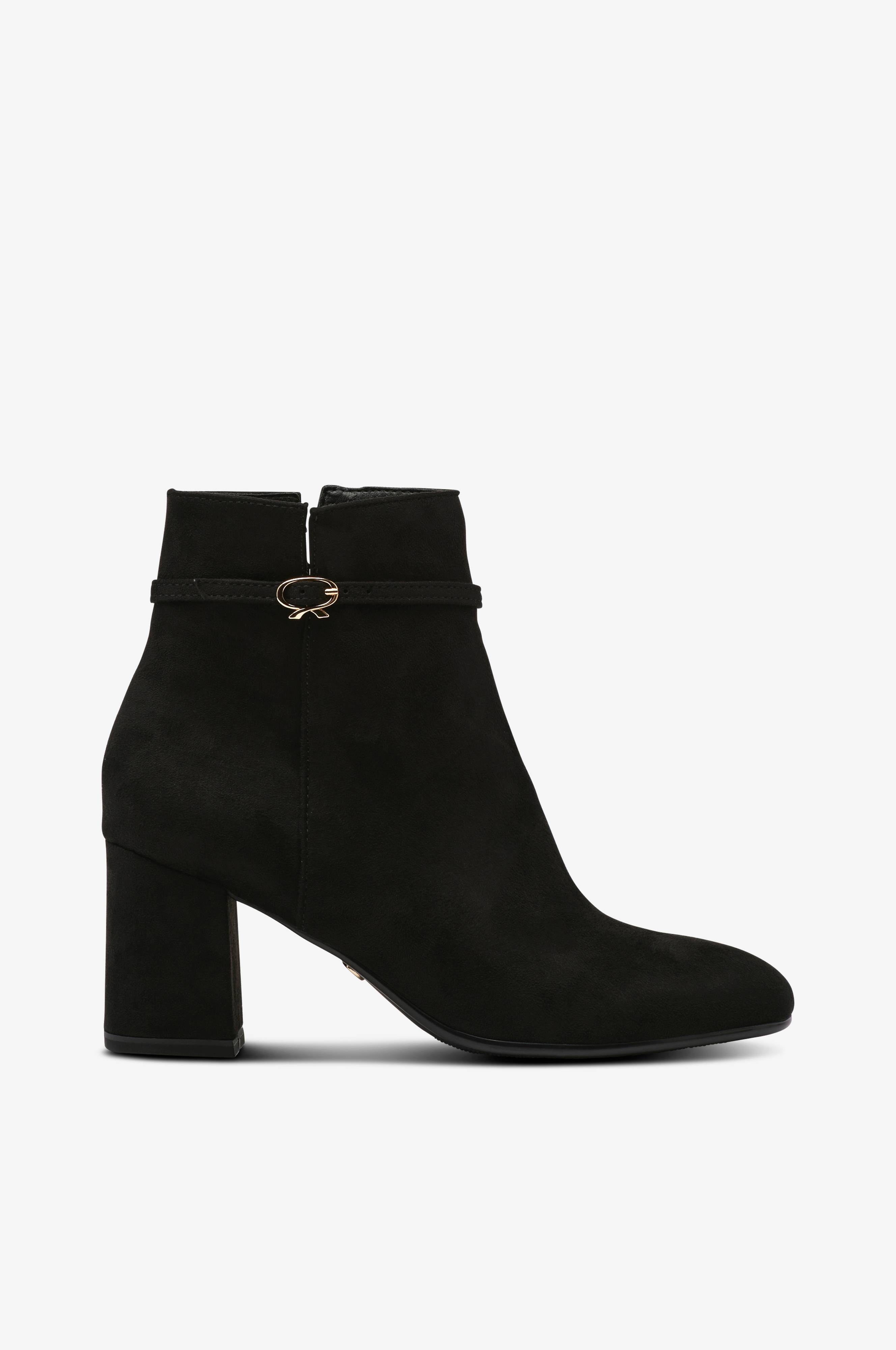 • Boots i semsket skinnimitasjon • Kledd kilehæl • Glidelås på innsiden av skaftet • Liten spenne på utsiden • Foring i tekstilmocka • Skafthøyde: 12 cm i størrelse 37 • Hælhøyde: 7 cm