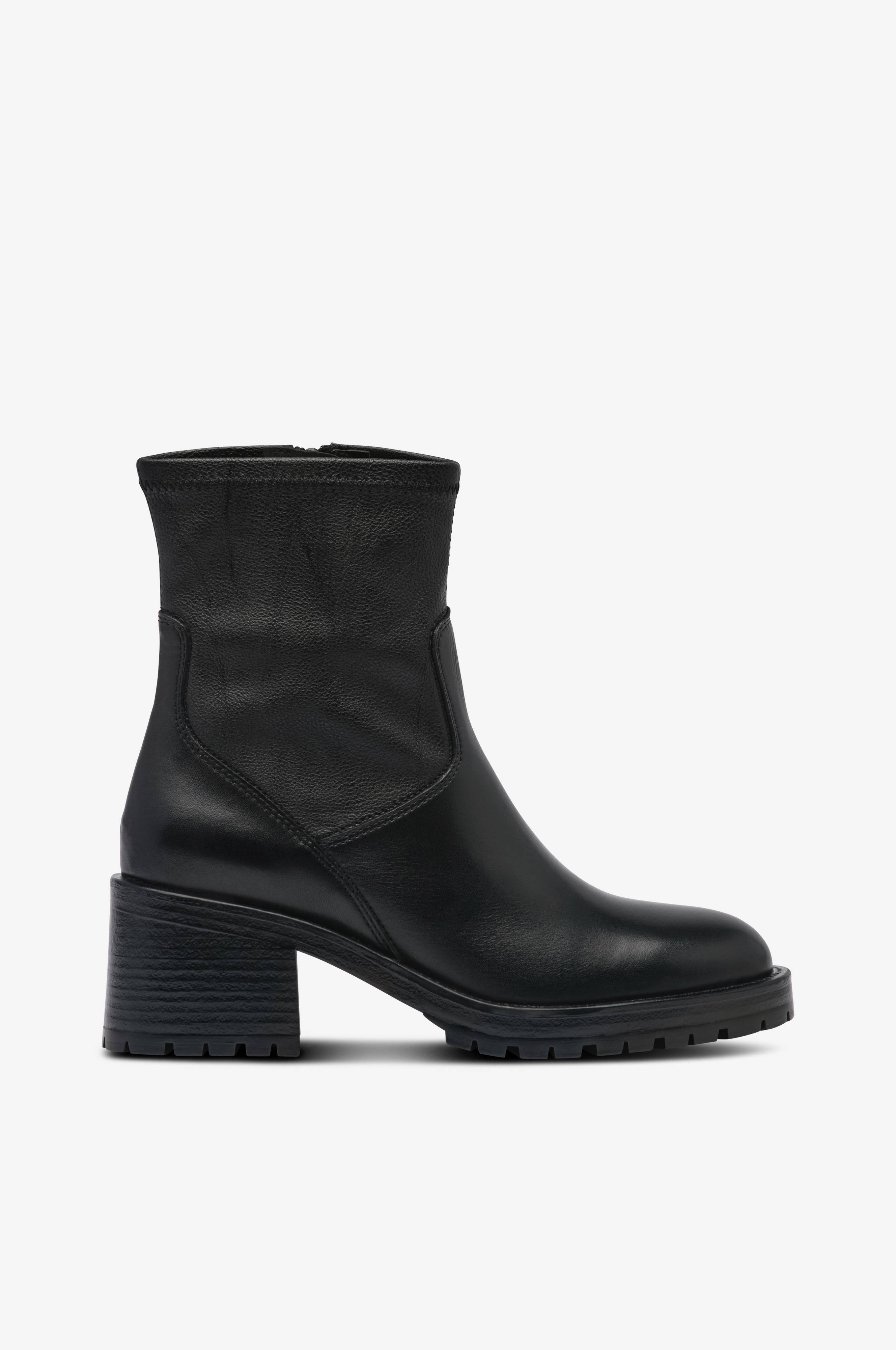 • Modell i skinn• Avrundet tå• Glidelås på innsiden• Tekstilfôr• Hælhøyde: 6 cm• Skafthøyde: 15 cm i størrelse 37
