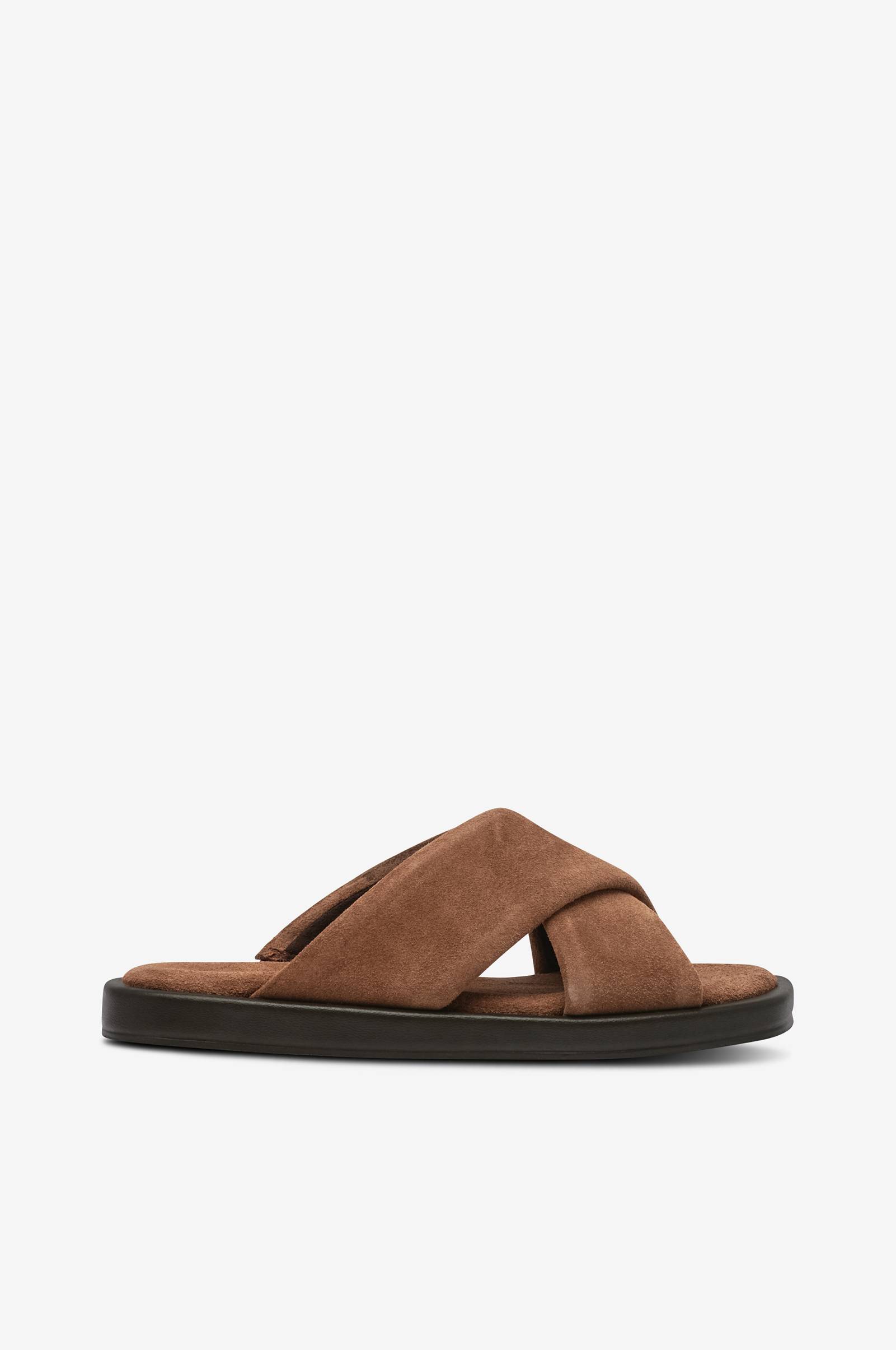 • Myke stropper på tvers i semsket skinn• Fotseng i semsket skinn