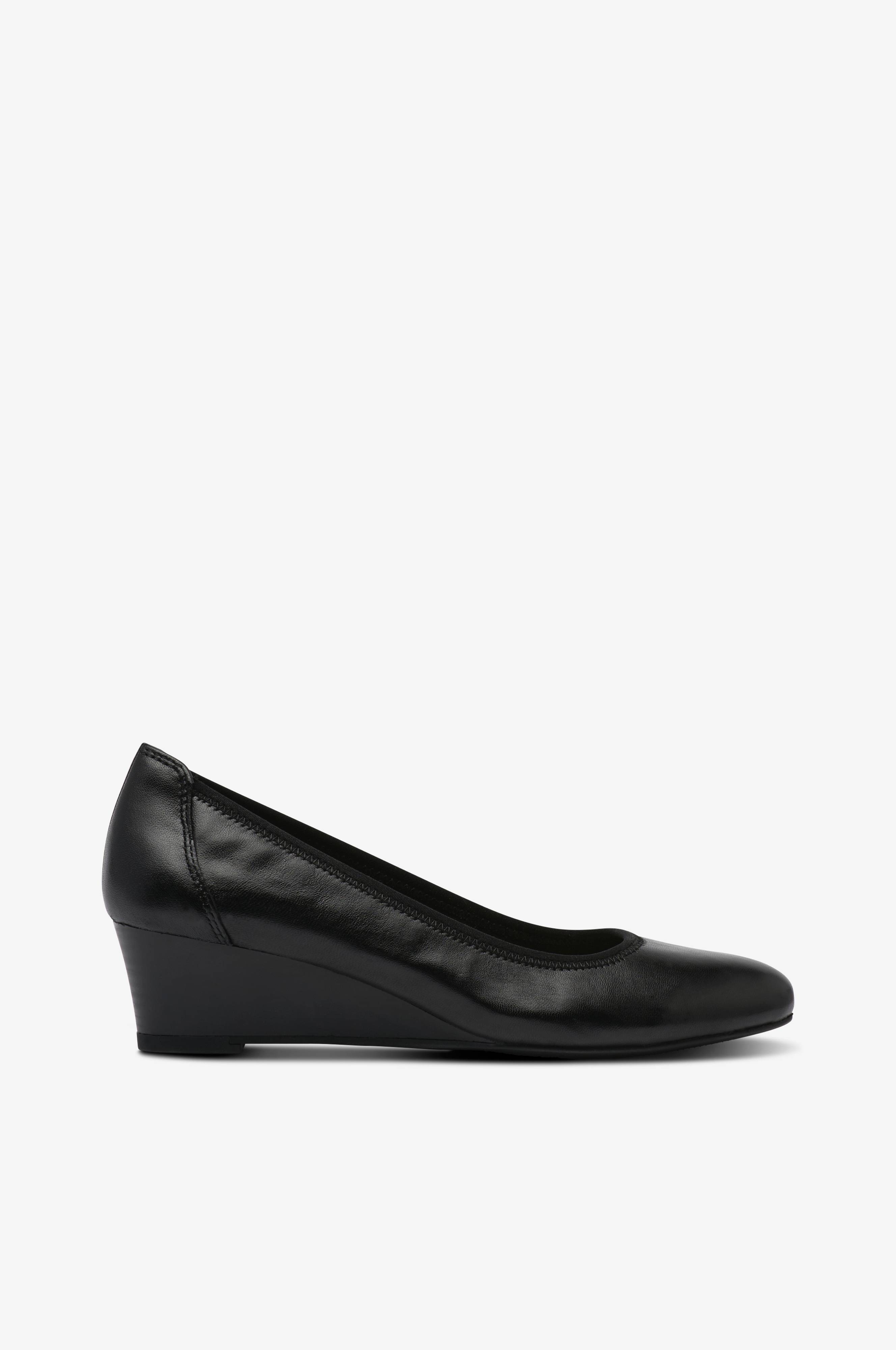 • Sko i skinn med kilehæl• Avrundet tå• Mykstoppet innersåle• Hælhøyde: 4,5 cm