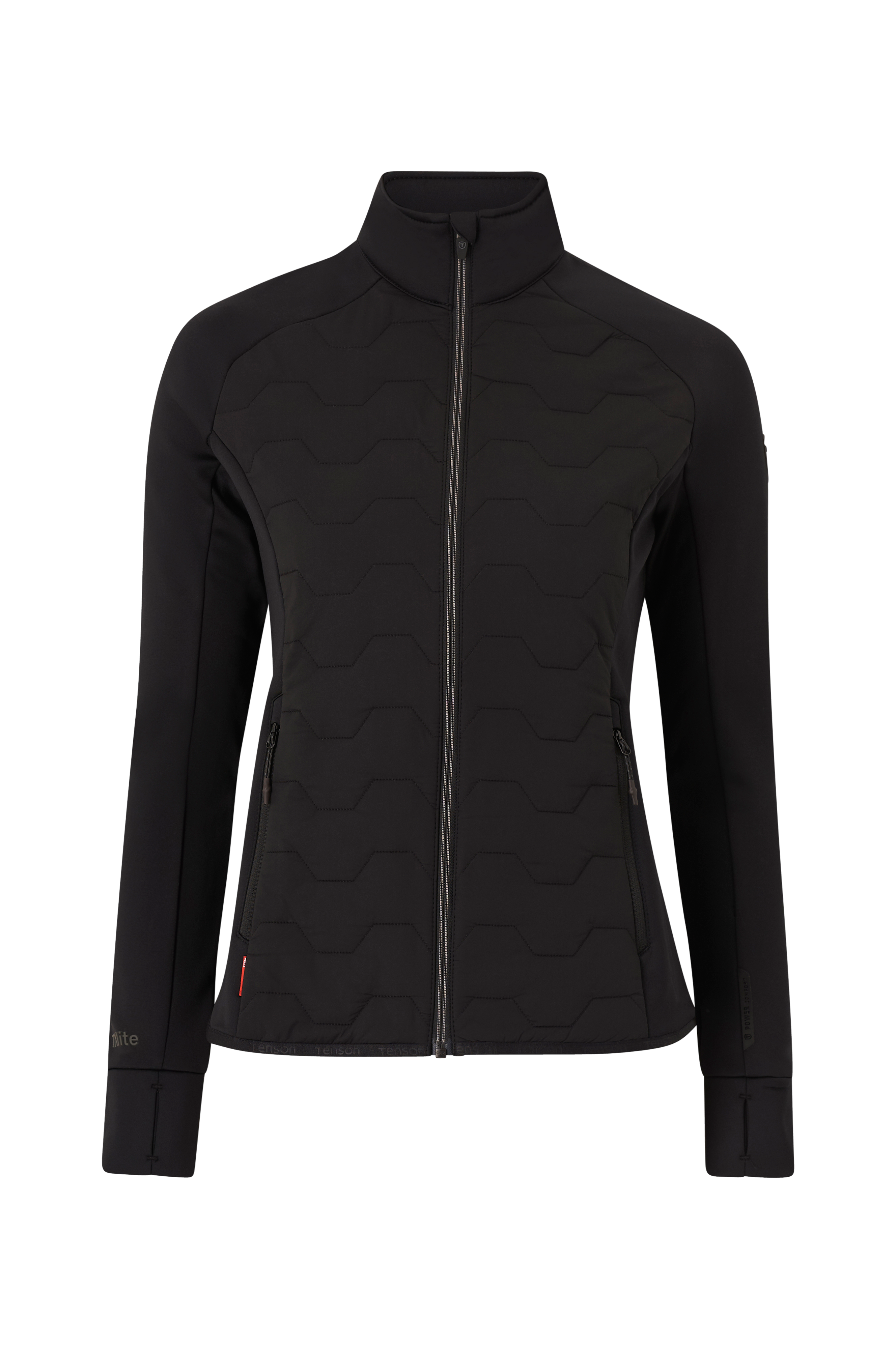 - Hurtigtørkende mellomlagsjakke med stretch- Quiltet og lett vattert foran og bak- Ståkrage- Glidelås- Forlengede ermer med tommelhull- To lommer med glidelås- Lengde ca. 66 cm i str S