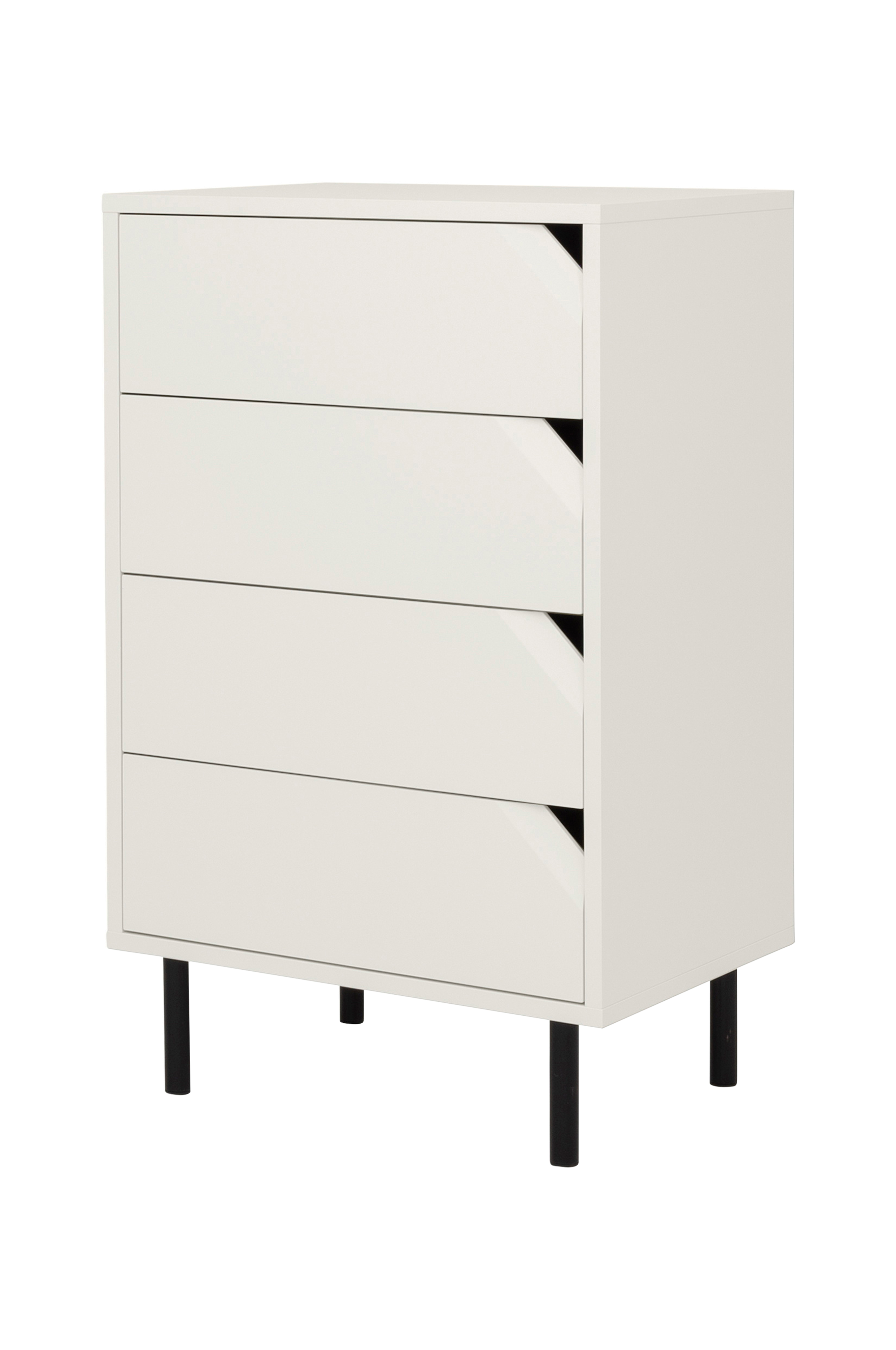 Praktisk og pen kommode. Kommode gir god oppbevaringsplass i for eksempel gang og soverom. Den unike designen med sofistikerte håndtak i form av fasede og skrå hjørner gjør møblene lette å plassere i ethvert hjem. Skuffesidene minner om lin når de dras ut. Møblene har svarte, dekorative ben i metall. Produsert i Sverige av Tenzo. Krever montering, instruksjoner medfølger. Veltebeskyttelse. Designet av Jurij Rahimkulov.