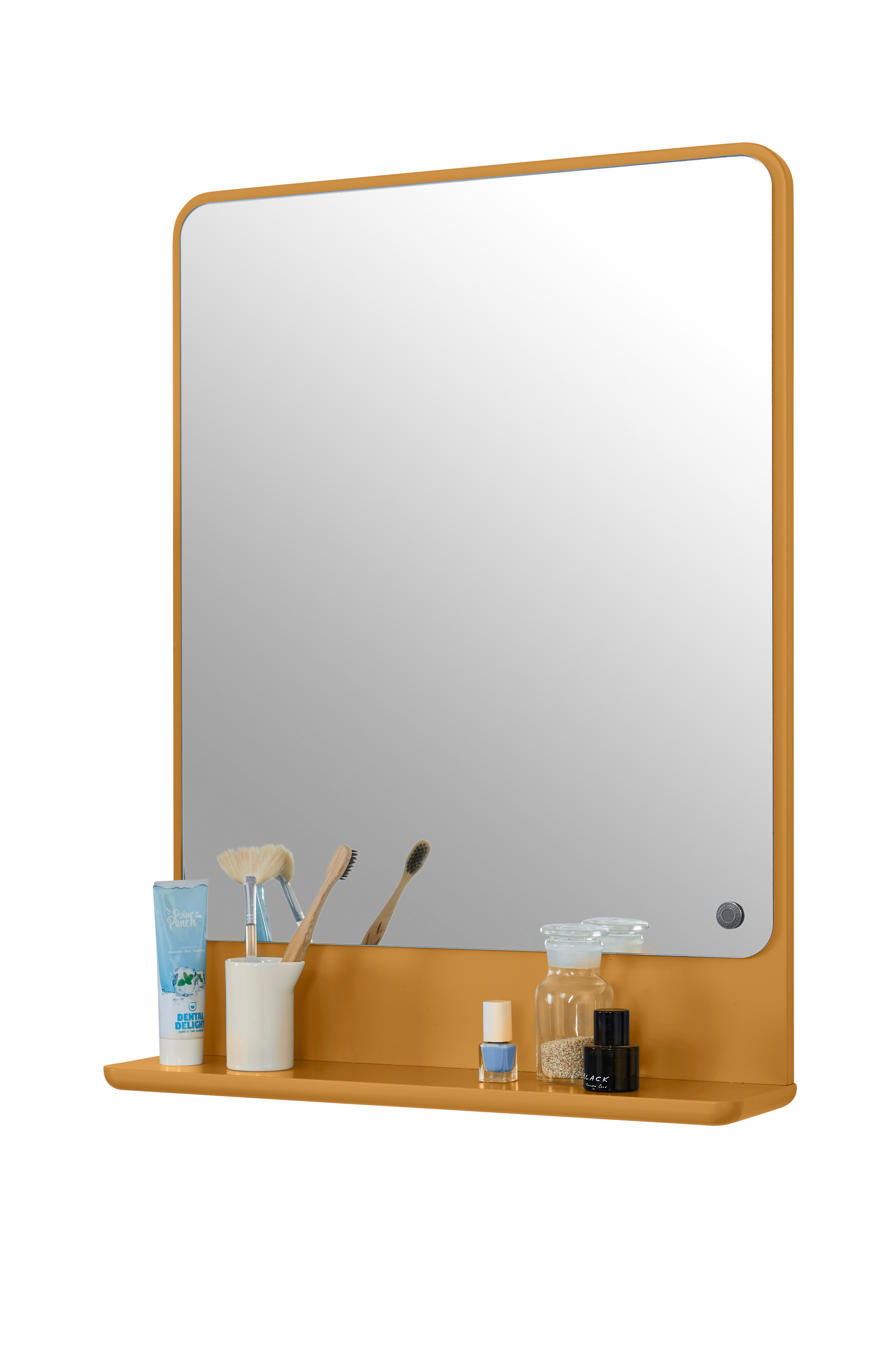 Baderomsspeil fra Tom Tailors Color Bath collection har en åpen hylle til ting som brukes daglig. Speilet er både praktisk og en ekstra lekker interiørdetalj! Den hvite basen har avrundede hjørner i ekte Tom Tailor-stil. Match med de andre baderomsmøblene i Color Bath-kolleksjonen for et komplett moderne bad eller toalett. Stylet med Tom Tailor-merket knapp nederst i høyre hjørne. Produsert i Sverige av Tenzo. Festes på veggen med egnede skruer tilpasset din vegg.