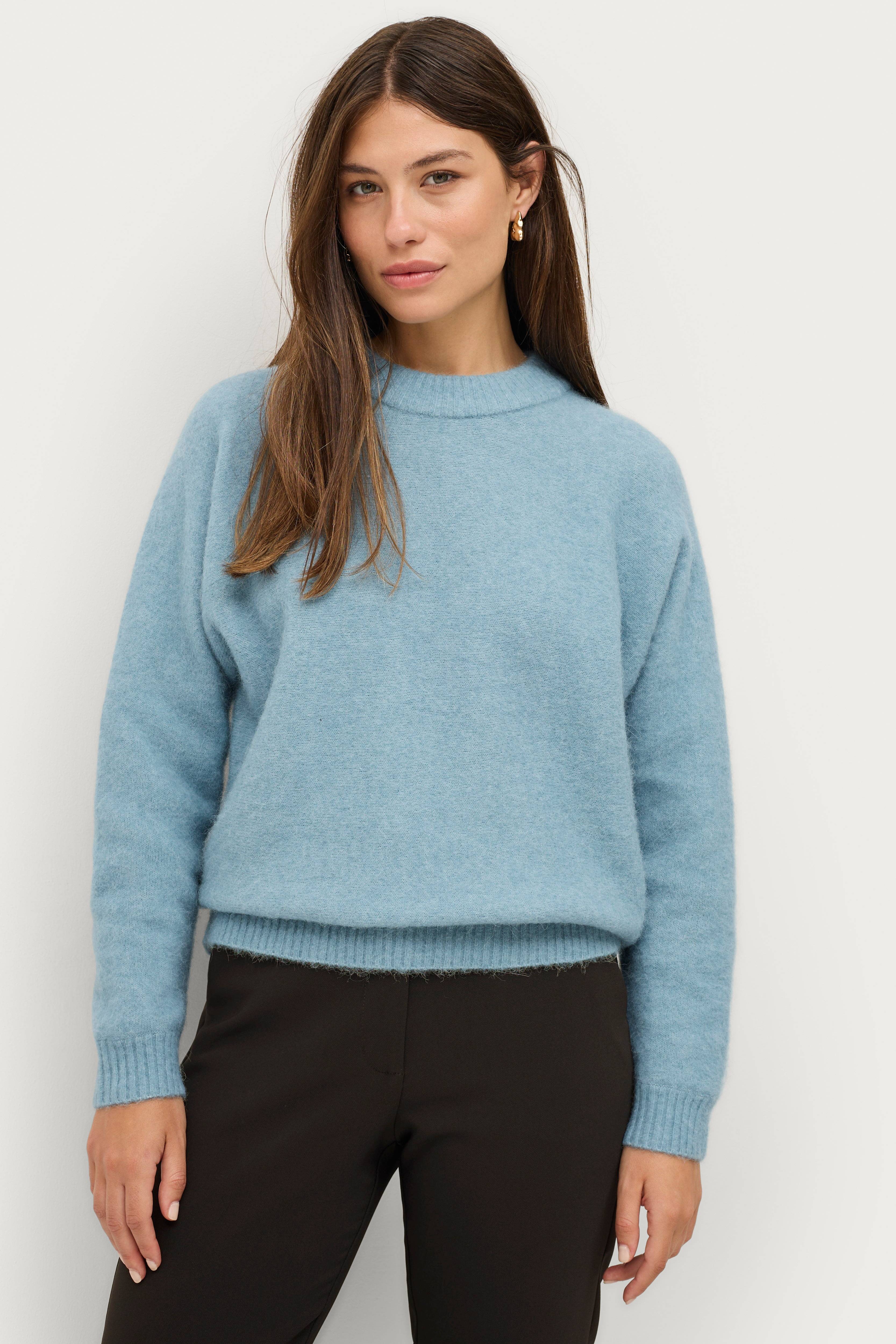 • Strikket genser i ullmiks• Klassisk modell• Håret overflate• Avslappet passform• Flaggermuserme
