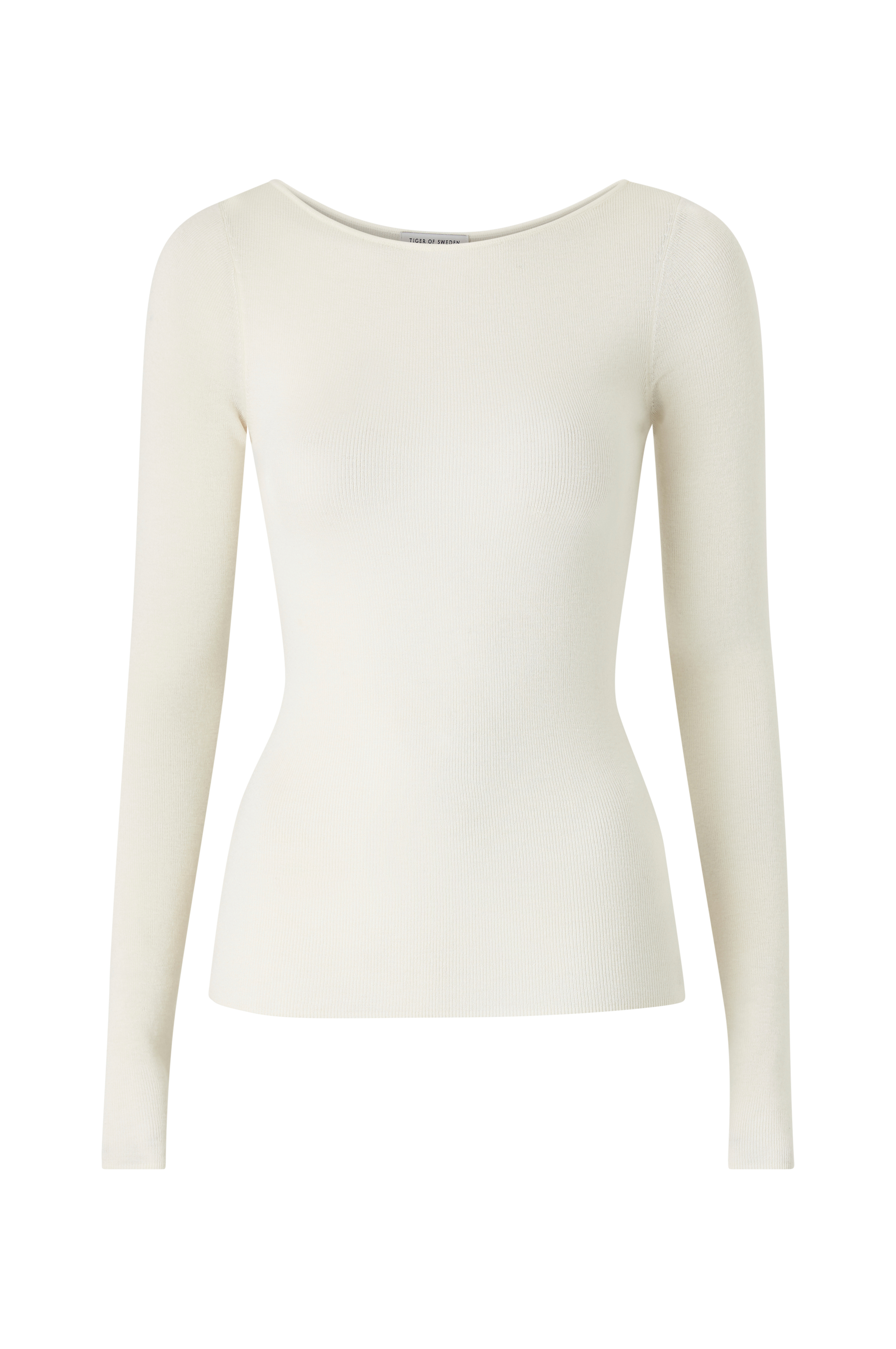 • Tynn, finstrikket genser i merinoullblanding• Litt videre hals bakpå• Smal passform