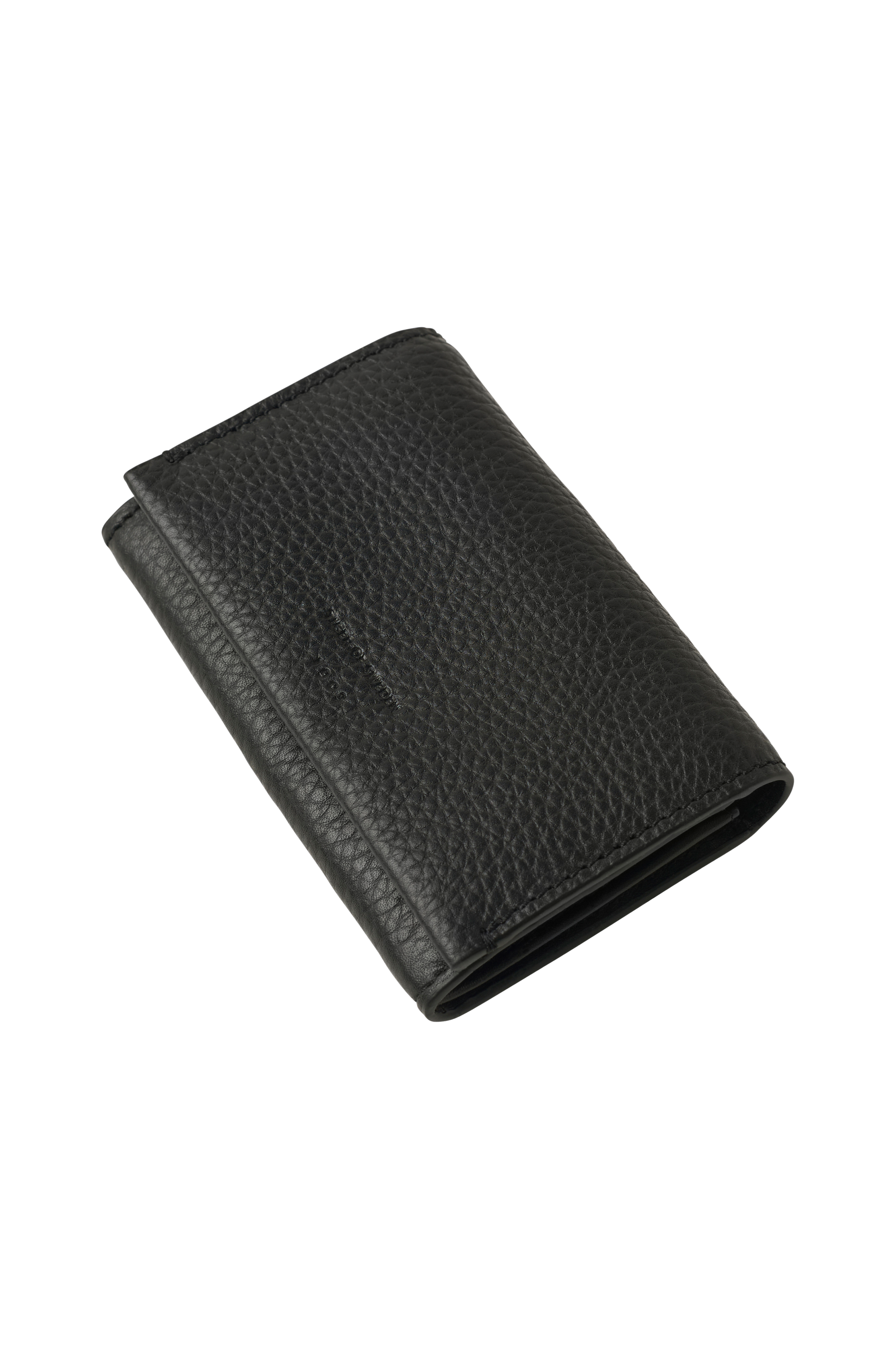 • Liten lommebok i preget skinn• Beholderen med glidelås• Fem åpne slisser• Trykknappslukning• Mål: B 12 x H 8 cm