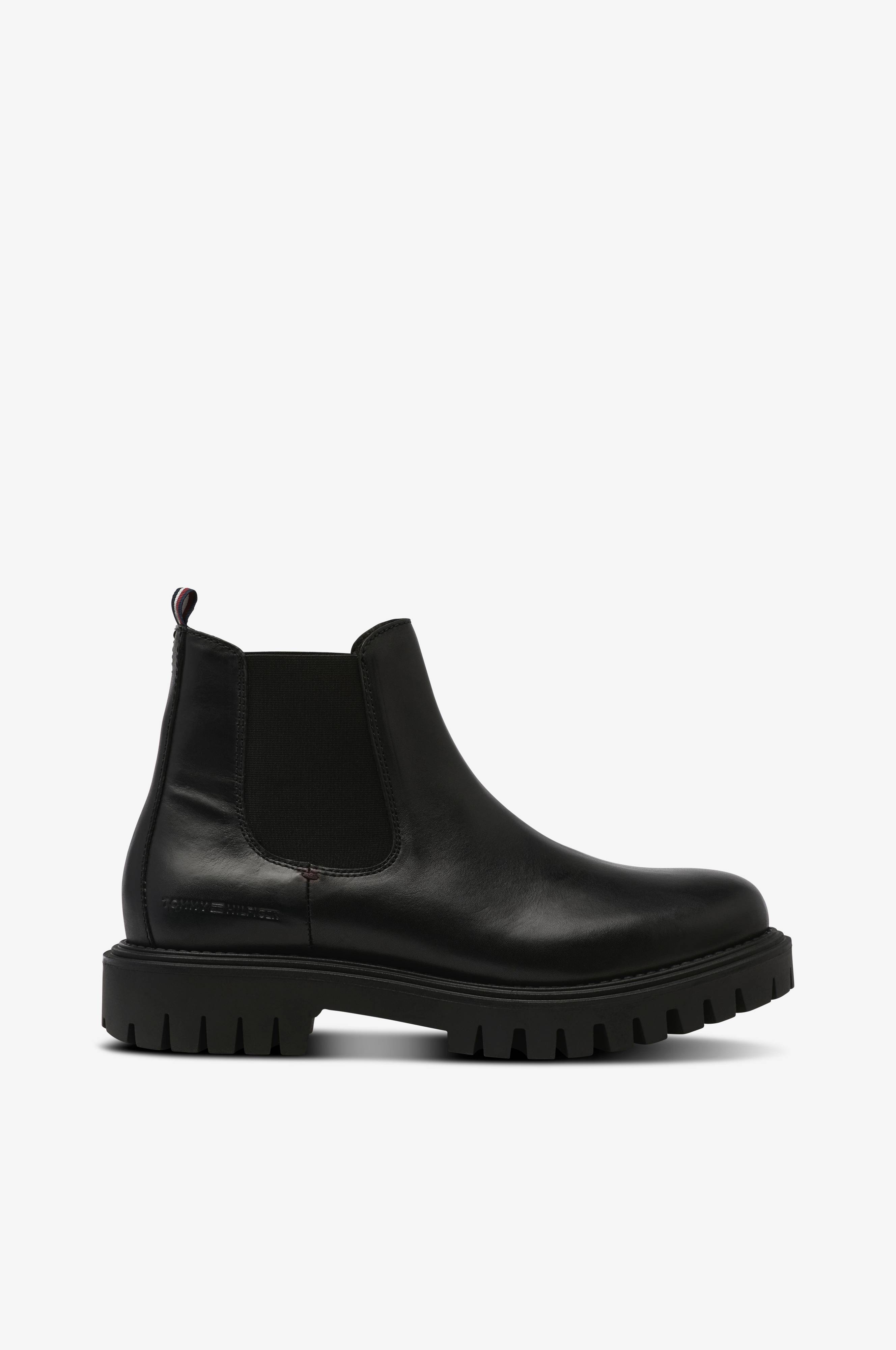 • Modell i skinn• Brede elastiske paneler på begge sider av skaftet• Draflik bakpå• Grovmønstret yttersåle