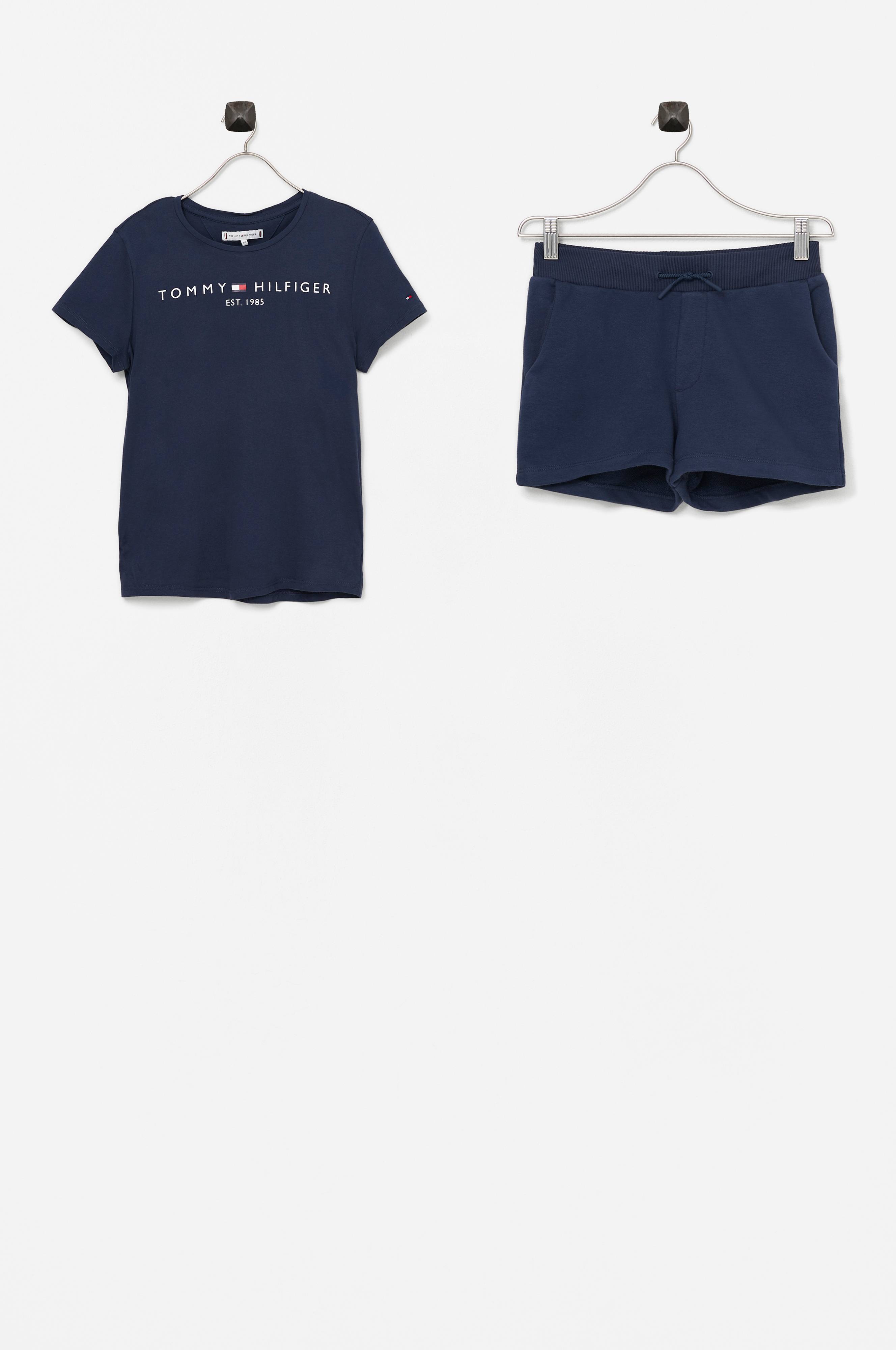 Sett med T-shirt og sweatshorts. T-shirten har rund hals og trykk foran. Shortsen har ribbet, elastisk midje med snøring. Sidelommer.
