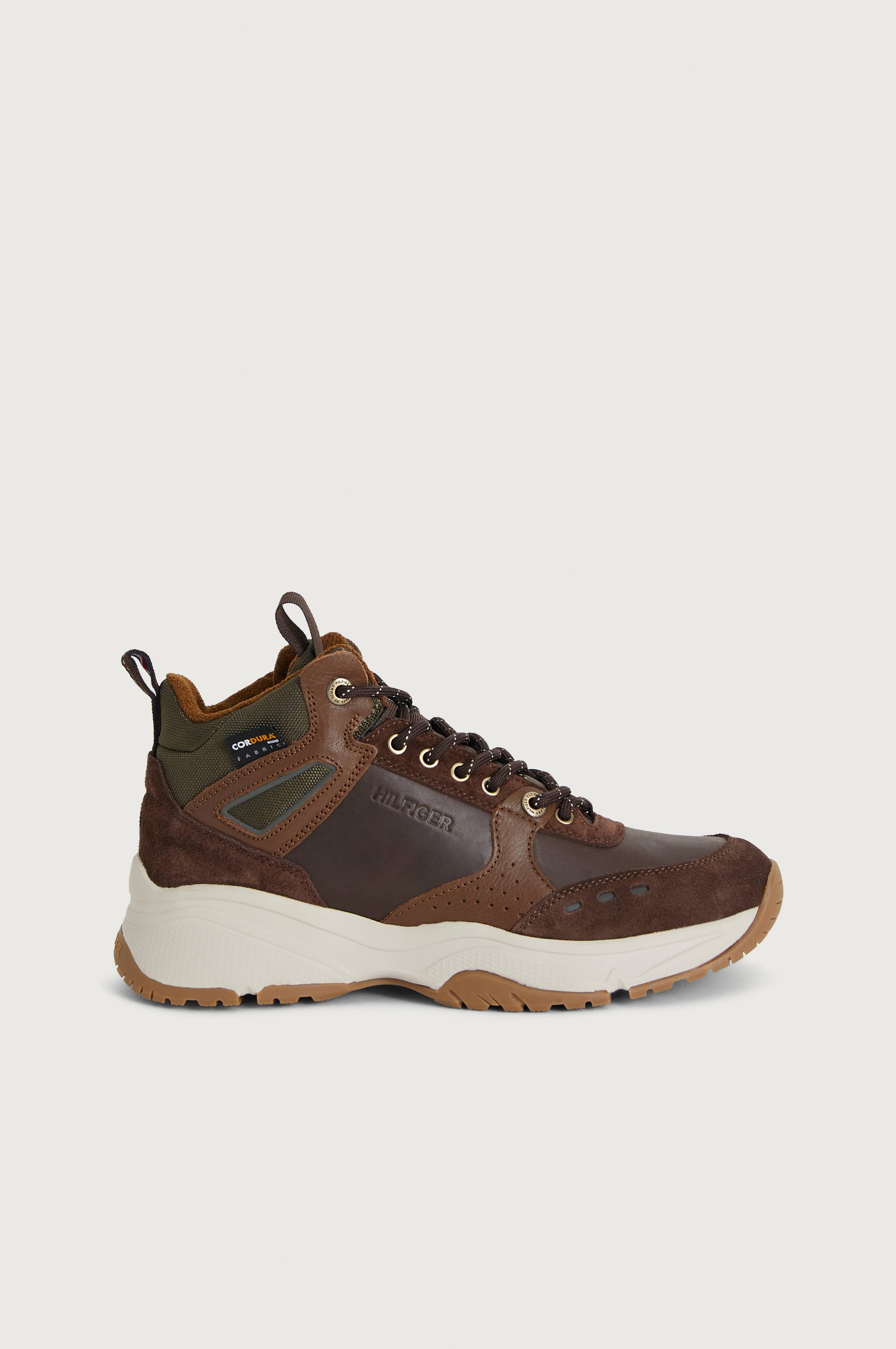 Sneakers fra Tommy Hilfiger med overdel i skinn og tekstil. Skoene har et merke på pløsen og drahempe på skaftet.