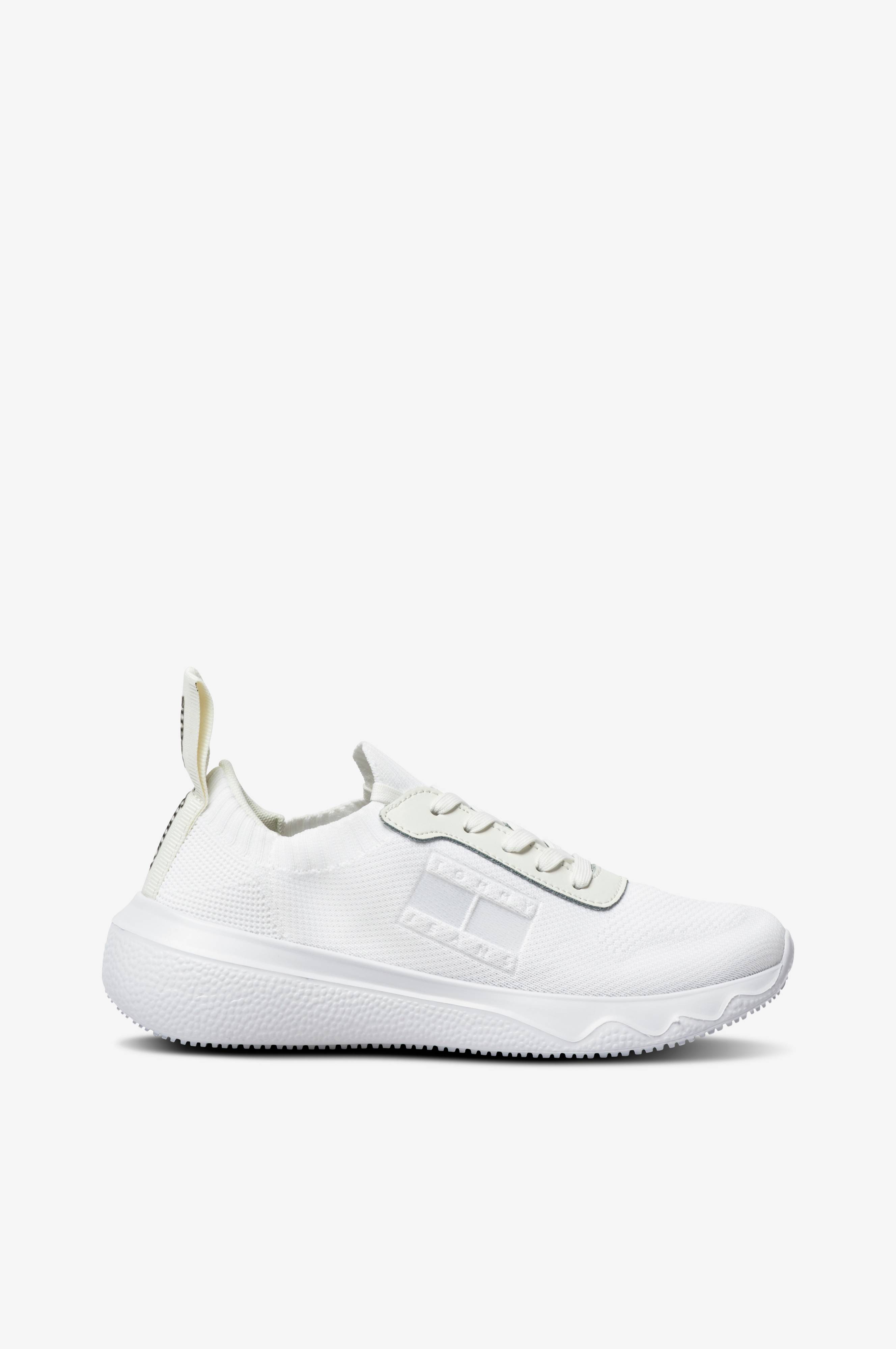 Lette sneakers i slip on-modell. Produsert i elastisk tekstil med ribbet kant rundt åpningen samt bred drahempe bak. Vanlig snøring for justerbar passform. Lettvektig, lett avrundet såle.