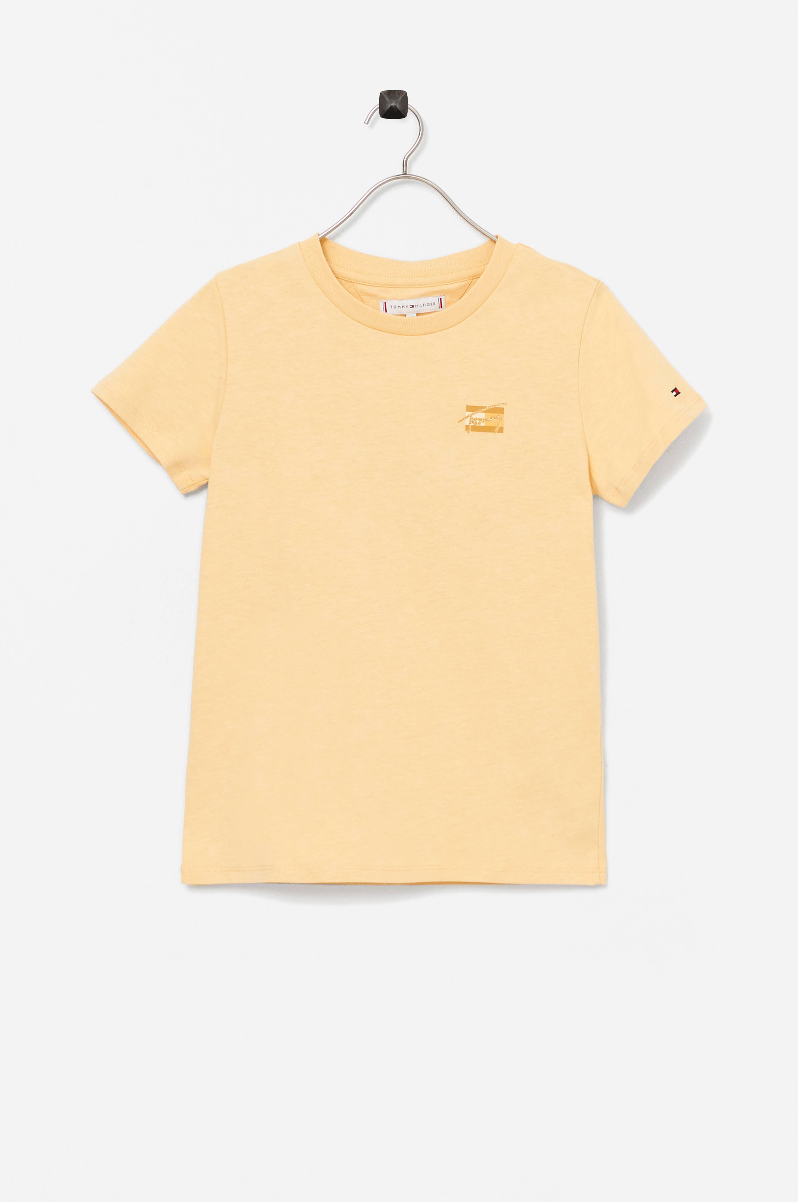T-shirt fra Tommy Hilfiger med normal passform. T-shirten har en gullfarget logo og rett nederkant. Stoffet er i en myk bomullskvalitet.