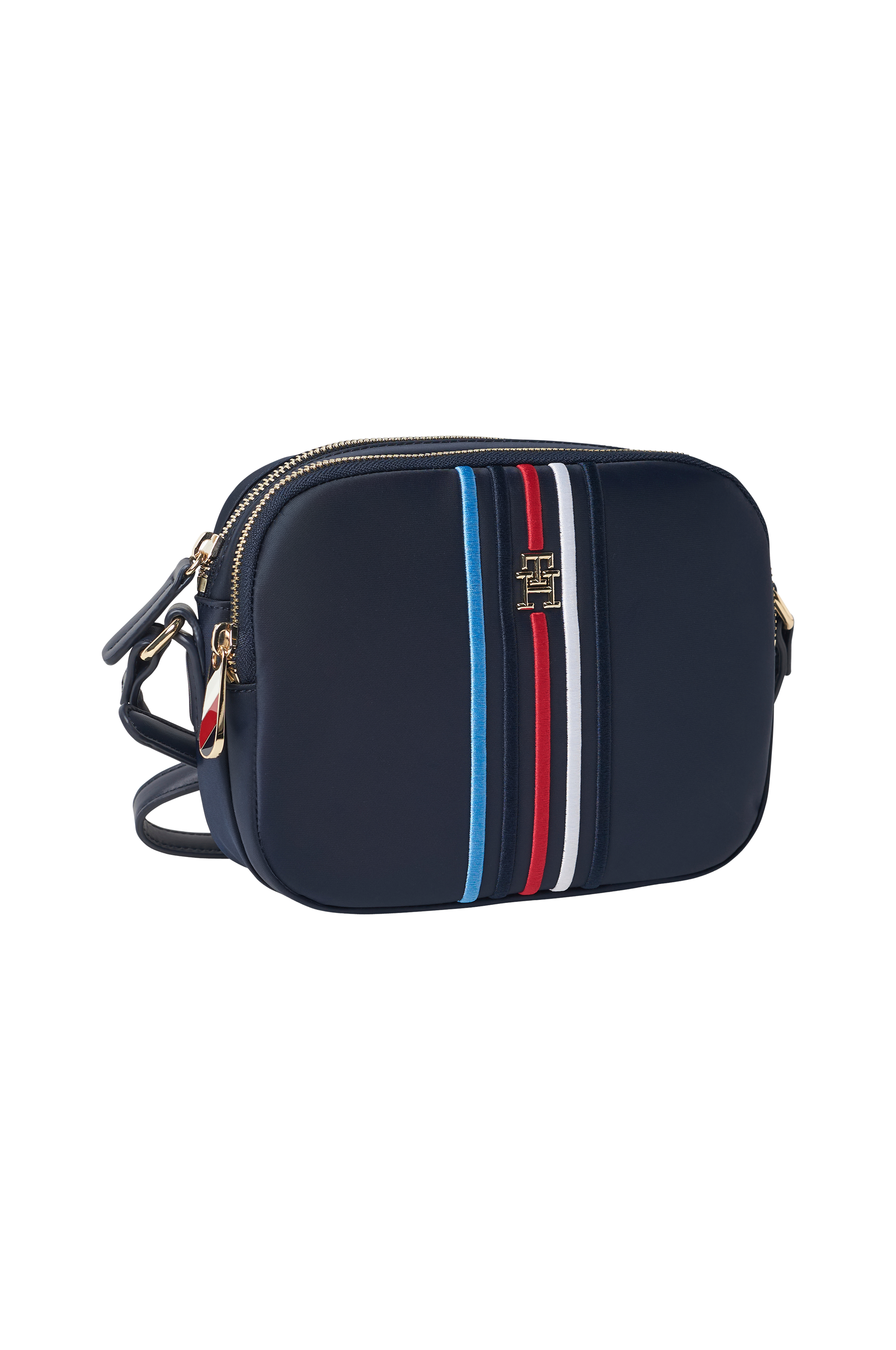 • Vesken i nylon med glatt overflate• Kontrastfargede striper med logo i metall på en side• Detaljer i gullfarget metall• To beholdere med glidelåser• En innvendig glidelåslomme• Justerbar skulderstropp• Mål: B 21 x H 17 x D 5 cm