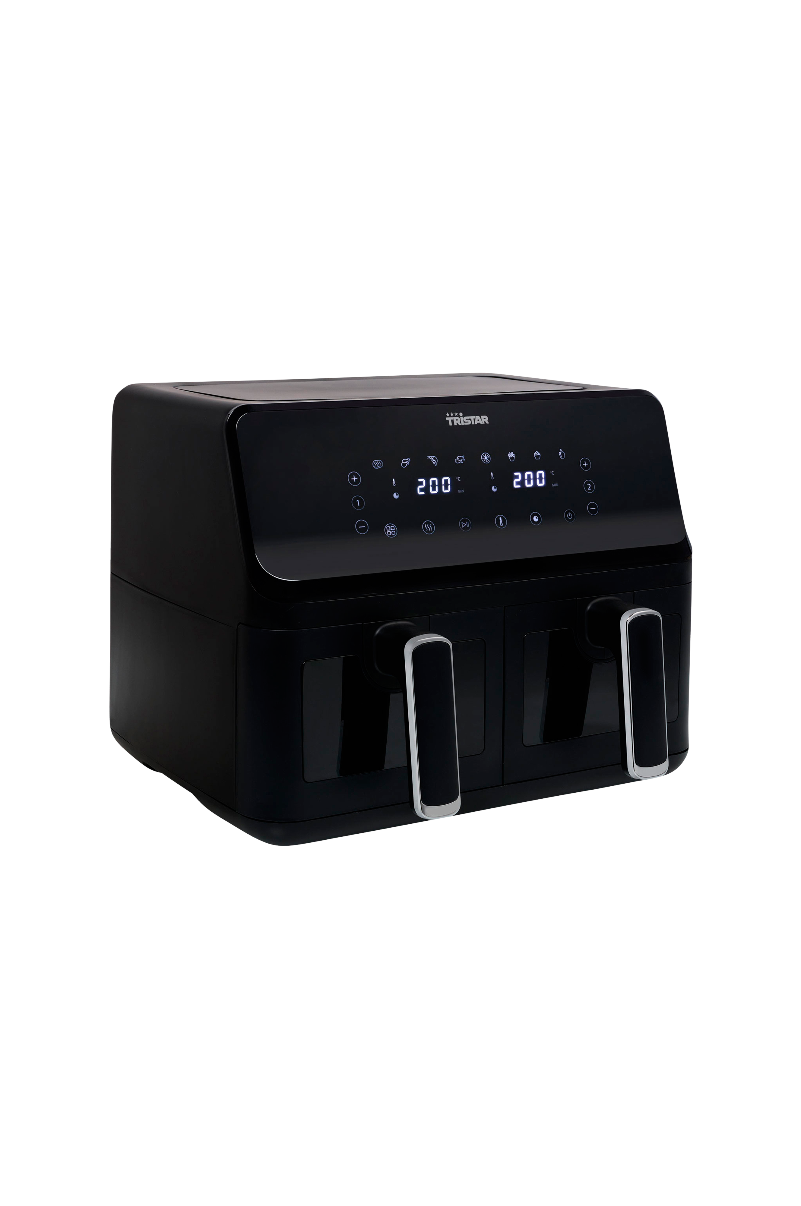 Med denne frityrkokeren med to kurver kan du tilberede to forskjellige retter samtidig.