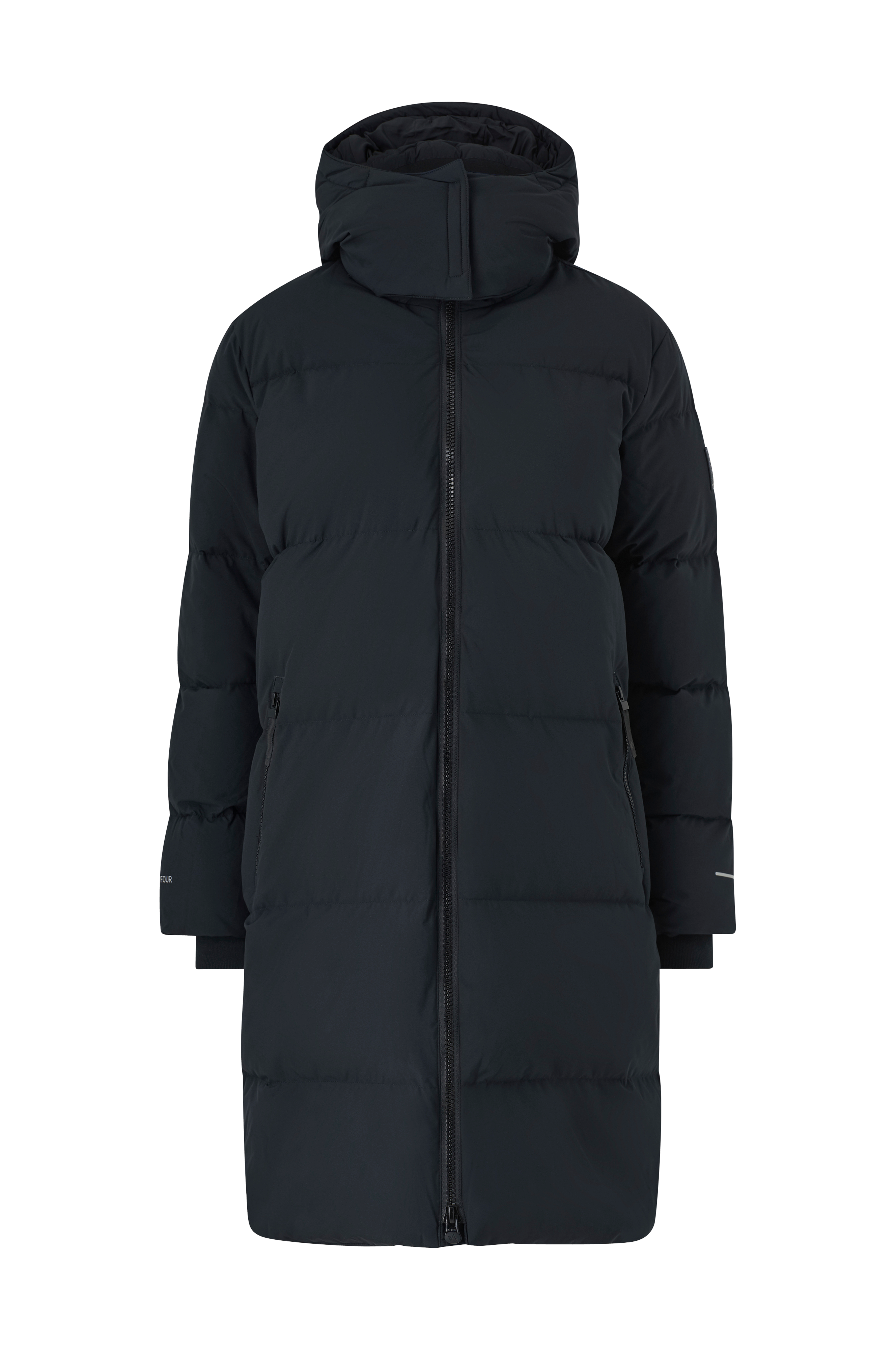 • Fast hette • Høy krage med ribbet innside • To-veis glidelås • To lommer med glidelås • Ribbet mansjetter i ermeslutten • Refleksdetaljer • Vannavstøtende ytterstoff • Vannsøyle: 8000 mm • Pustende egenskap: 500 g/m2/24h • Lengde: 98 cm i størrelse 36