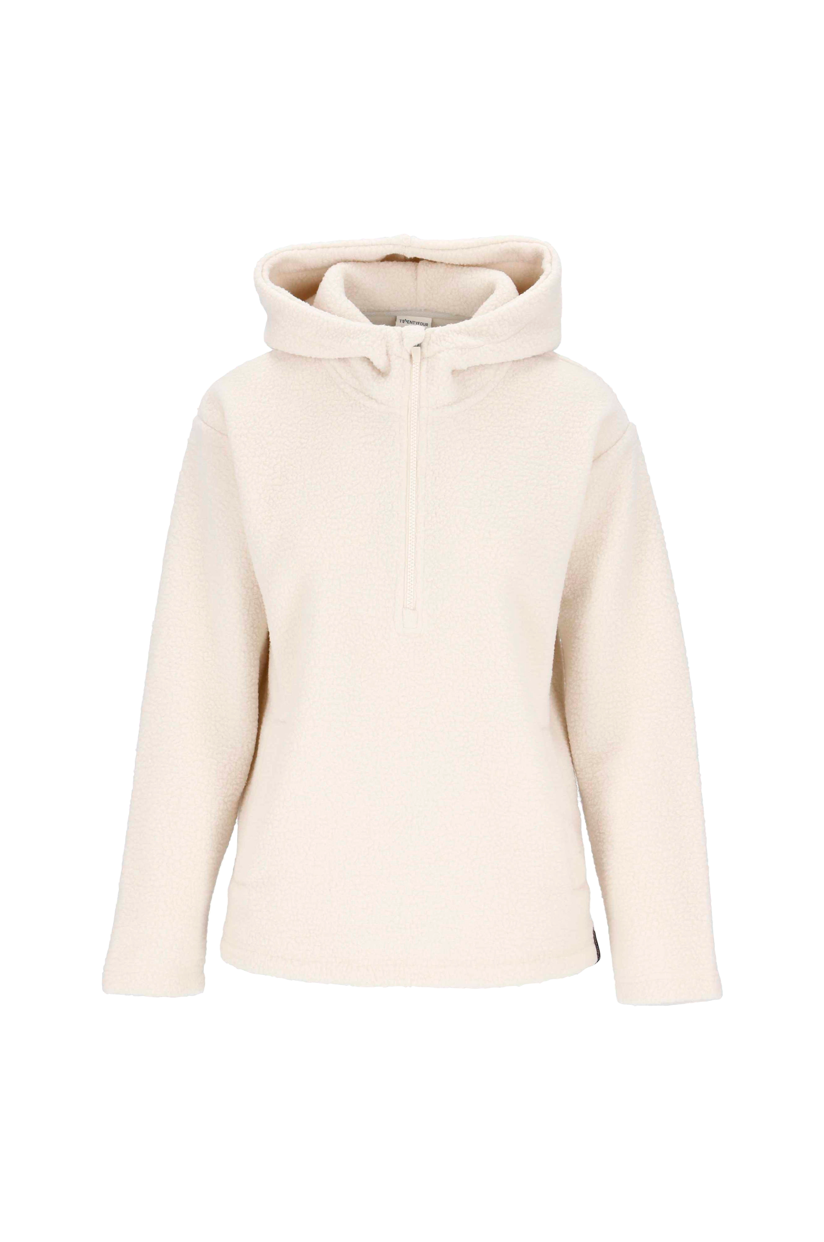 • Genser i pile med halv glidelås• Fast hette• Sidelommer• Myk, børstet innside
