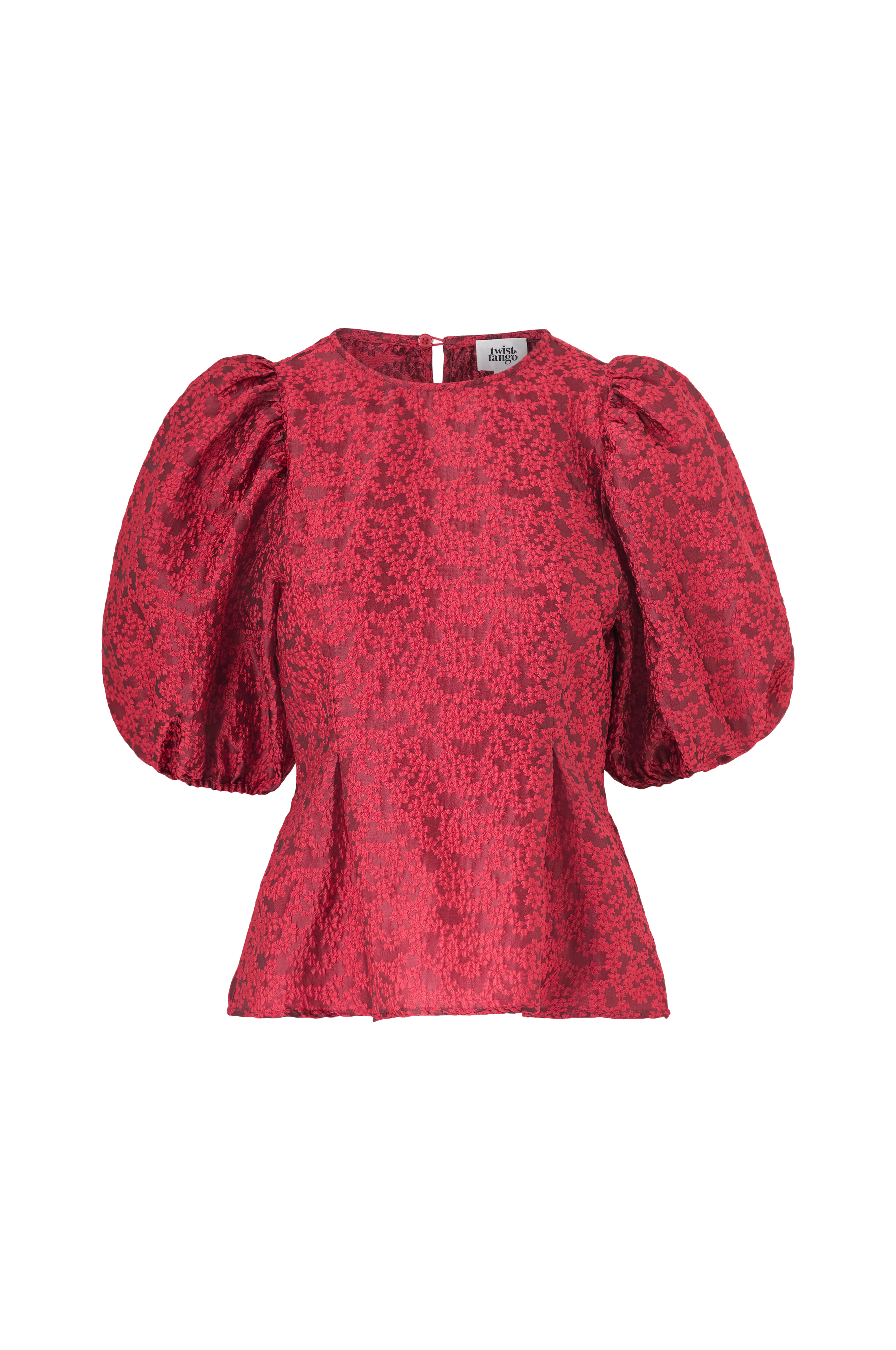 Ylja Blouse har korte, puffede ermer og en figurnær passform som fremhever midjen og skaper en smigrende, feminin silhuett. Den detaljerte, mønstrede teksturen gir en sofistikert følelse og et stilig utseende. Med sin skreddersydde form i midjen er den perfekt for en elegant og velkledd look.