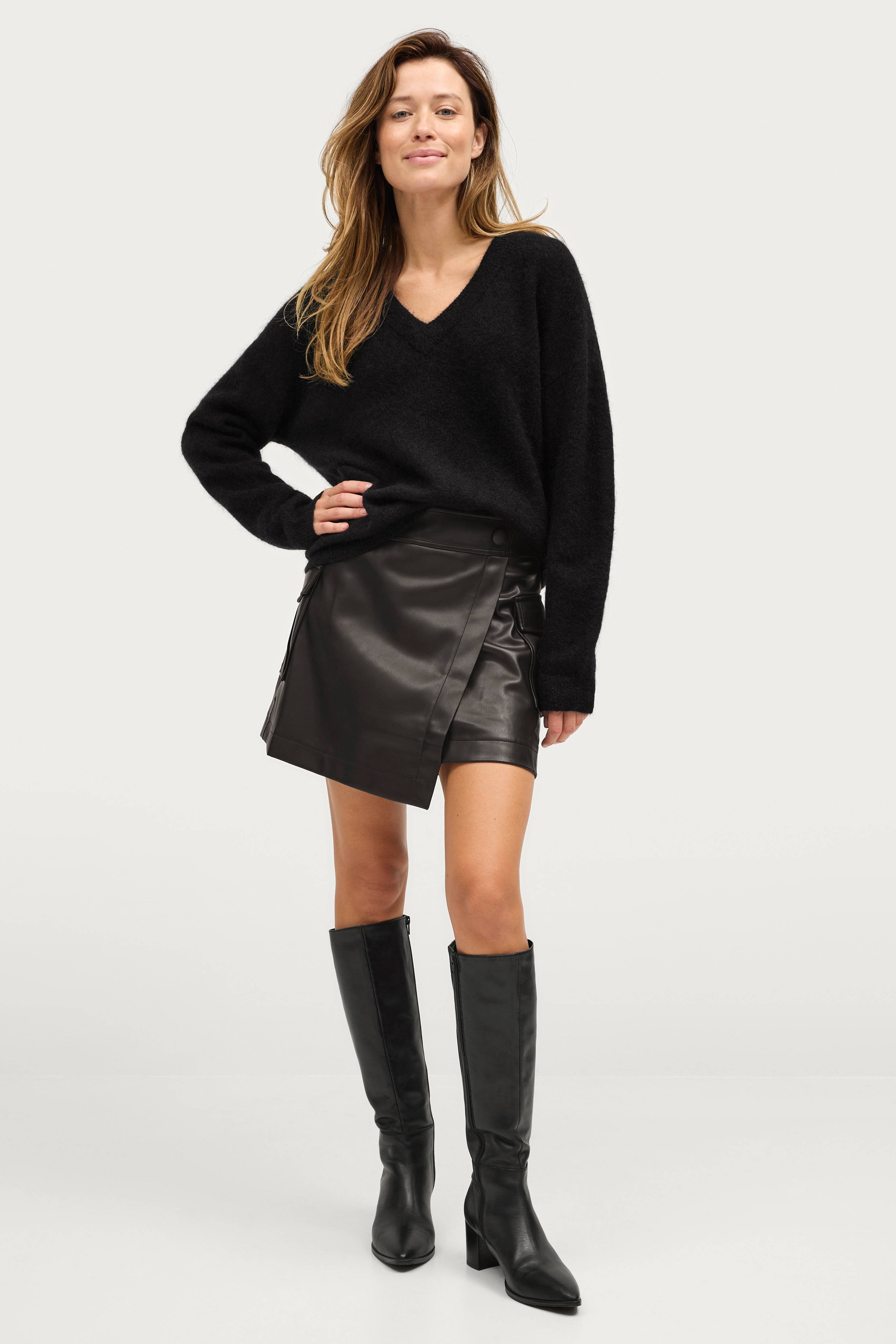 • Skjørt i skinnimitasjon• Omslagsdesign• Lommer i sidene• Glidelås bakpå• Dekorativ knapp ved midjen• Lengde: 40 cm i størrelse 36