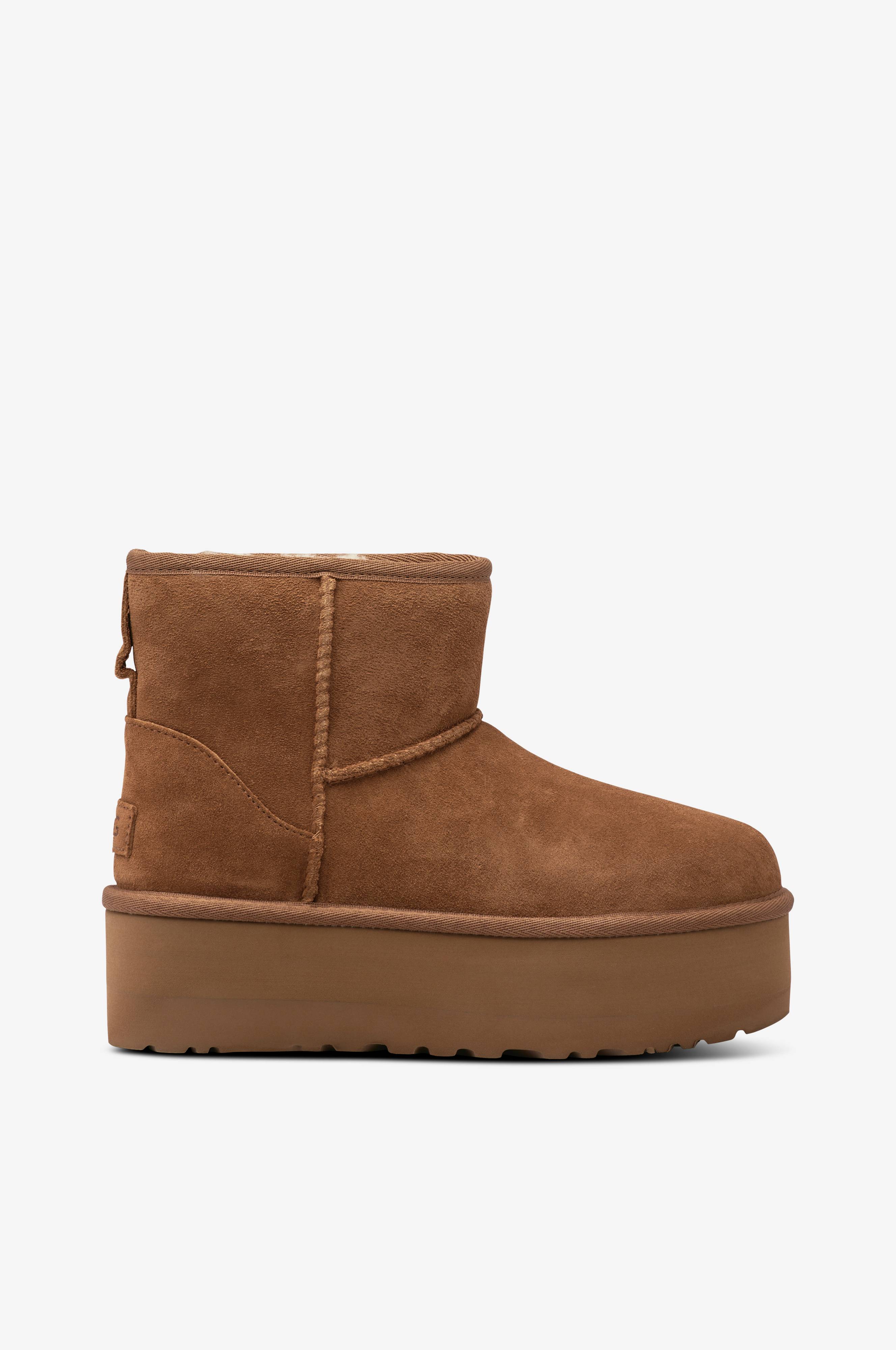 • Varm-forete boots i semsket skinn med plattformsåle• Foring i fårepels• Tekstilbånd rundt skaftet• Yttersåle i gummi• Skafthøyde: 12 cm i størrelse 37• Sålehøyde: 5 cm