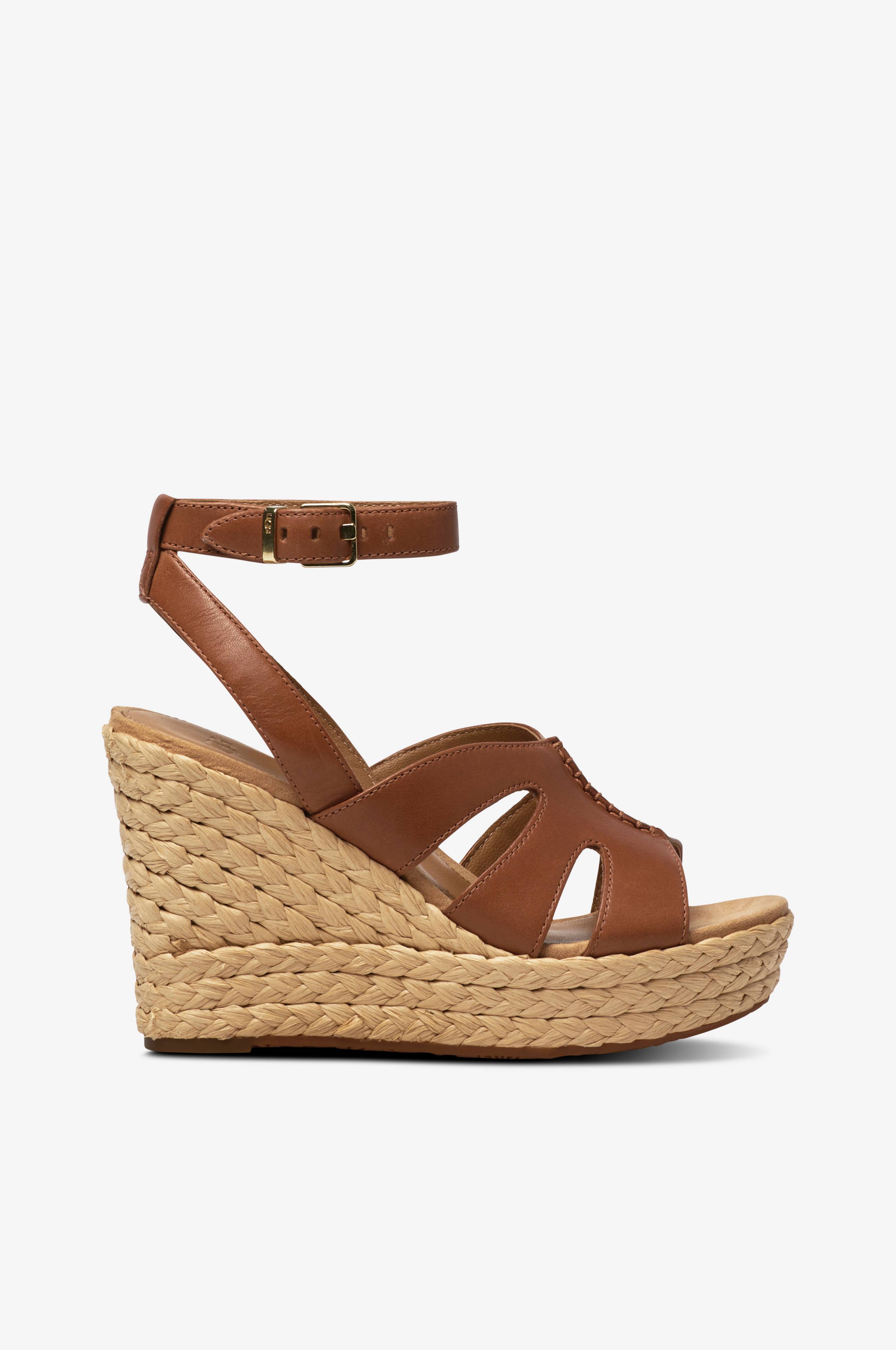 • Øvre del i mykt skinn• Ankel-reimen med justerbar metallspenne på siden• Dekket av tau kilehæl• Fotseng i skinn• Yttersåle i gummi• Hælhøyde: 10,5 cm