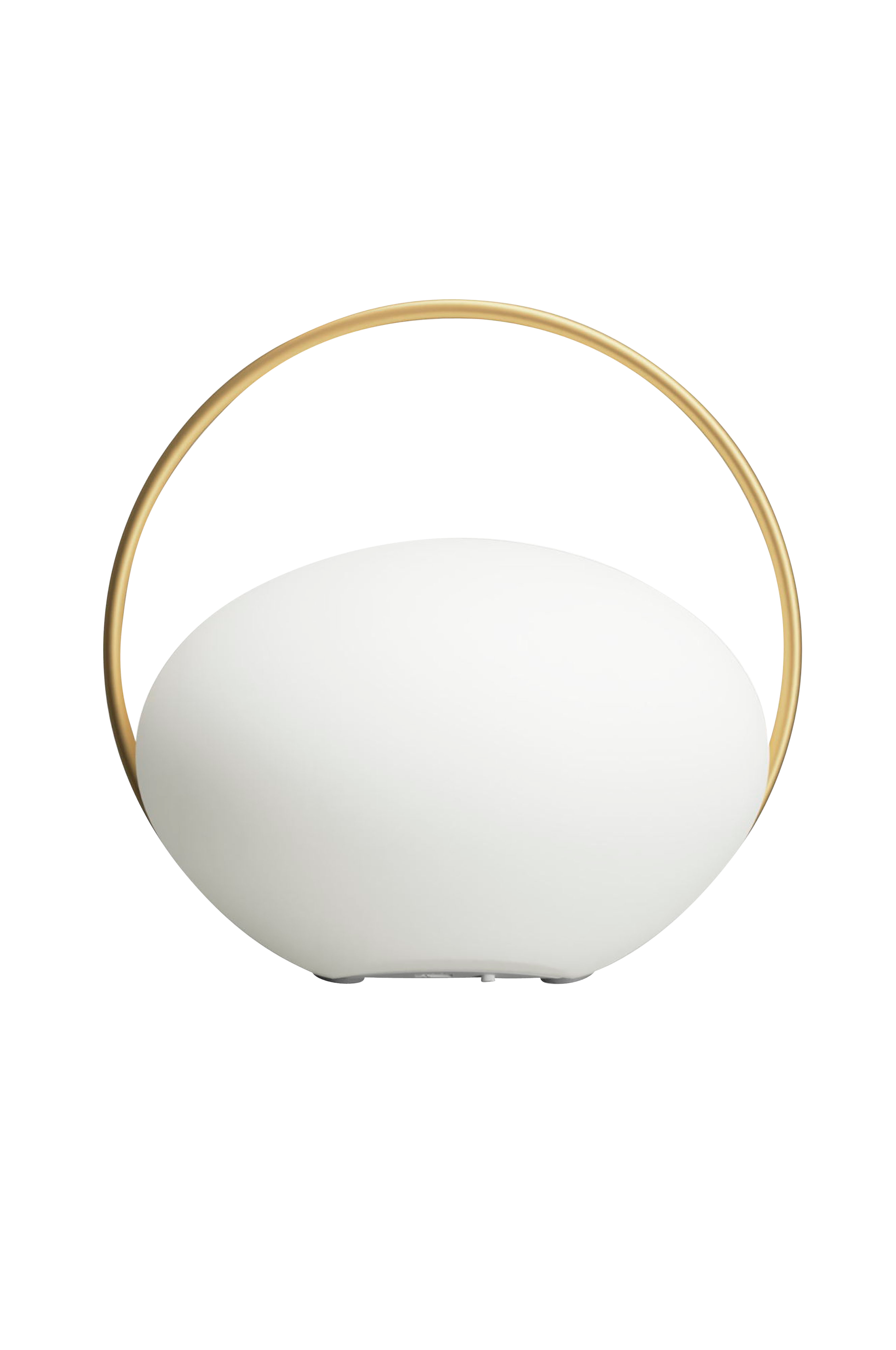 Inspirert av månens rotering rundt jorden. Orbit er fremstilt i melkehvit plast med raffinerte messingdetaljer, noe som gjør lampen både lett og pen - og perfekt til å ta med hvor du enn går. Den bærbare, trådløse lampen har tre ulike lysnivåer. Konstruksjonen lar deg slå den av og på - samt endre lysnivåer - enkelt ved å lett tippe lampen. Batteriet varer i opptil 20 timer. Du lader lampen enkelt ved å sette den på den medfølgende trådløse Unifier-laderen eller med den medfølgende ladekabelen. Ta den med deg til stranden eller lesekroken, eller pakk den i piknikkurven for koselig månebelyste pikniker. Orbits enkle, tidløse og lette design gjør den perfekt for både innen- og utendørsbruk, og kommer til å lyse opp omgivelsene.