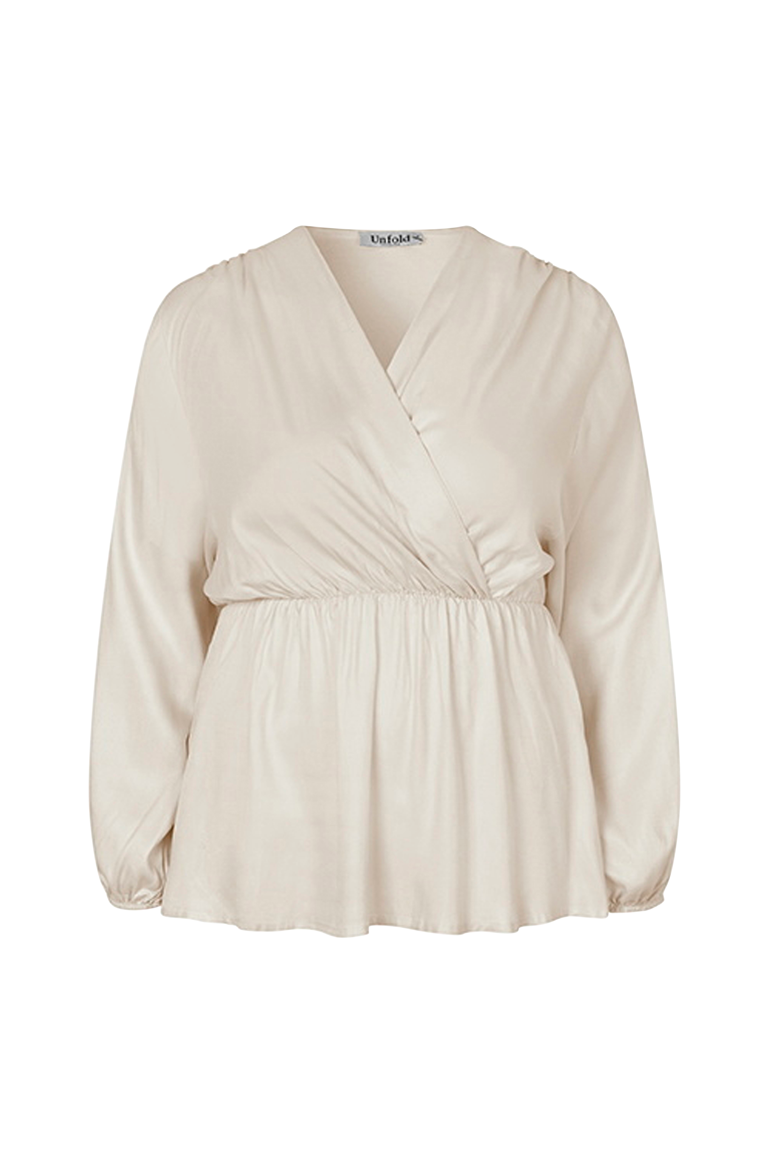 • Omslagsdesign• Elastisk utskjæring nedenfor bysten• Ballongermer med elastiske mansjetter• Plusstørrelser
