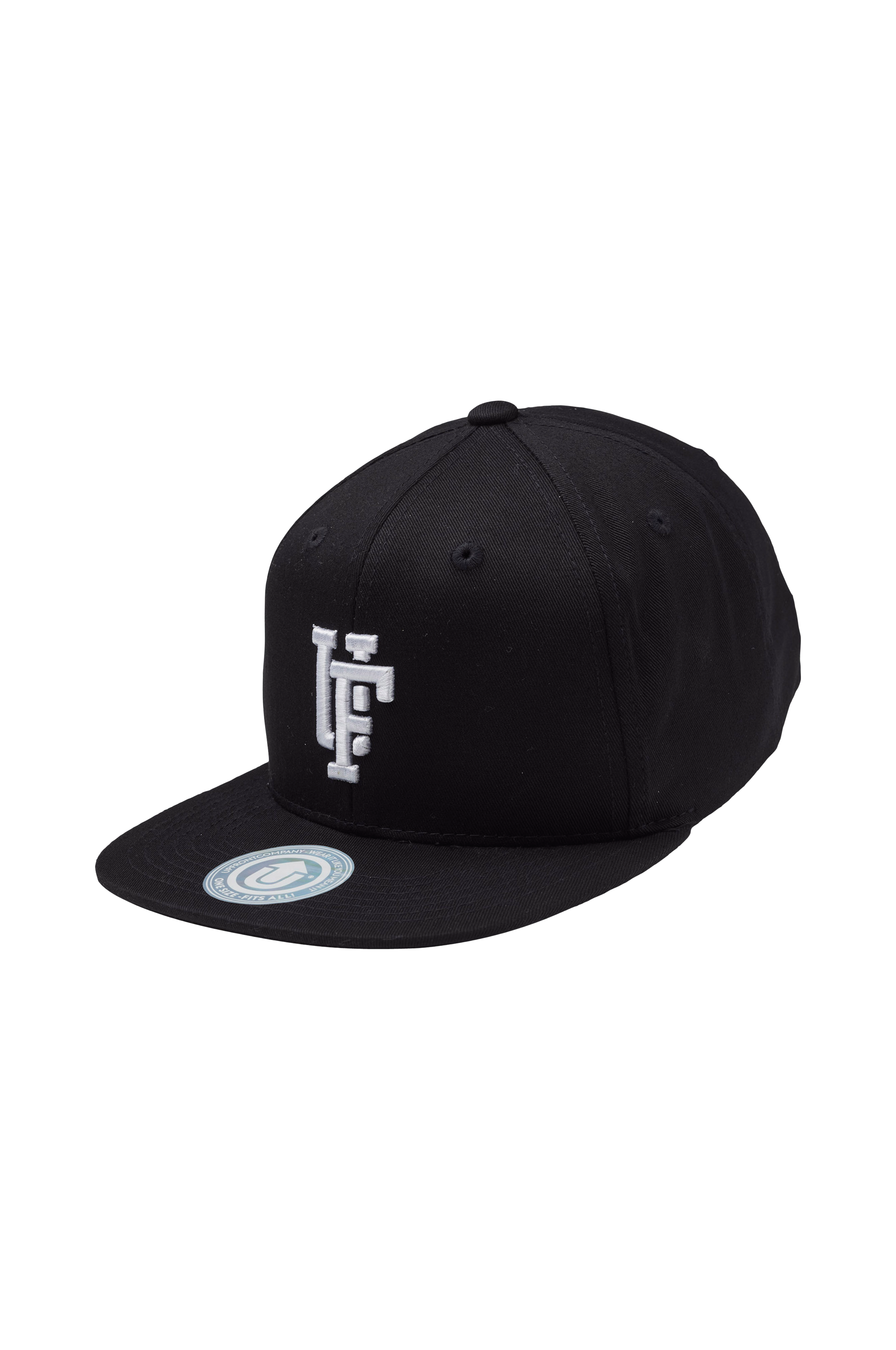 Caps i bomull med rett brem, brodert logo foran og justerbar plastspenne bak.