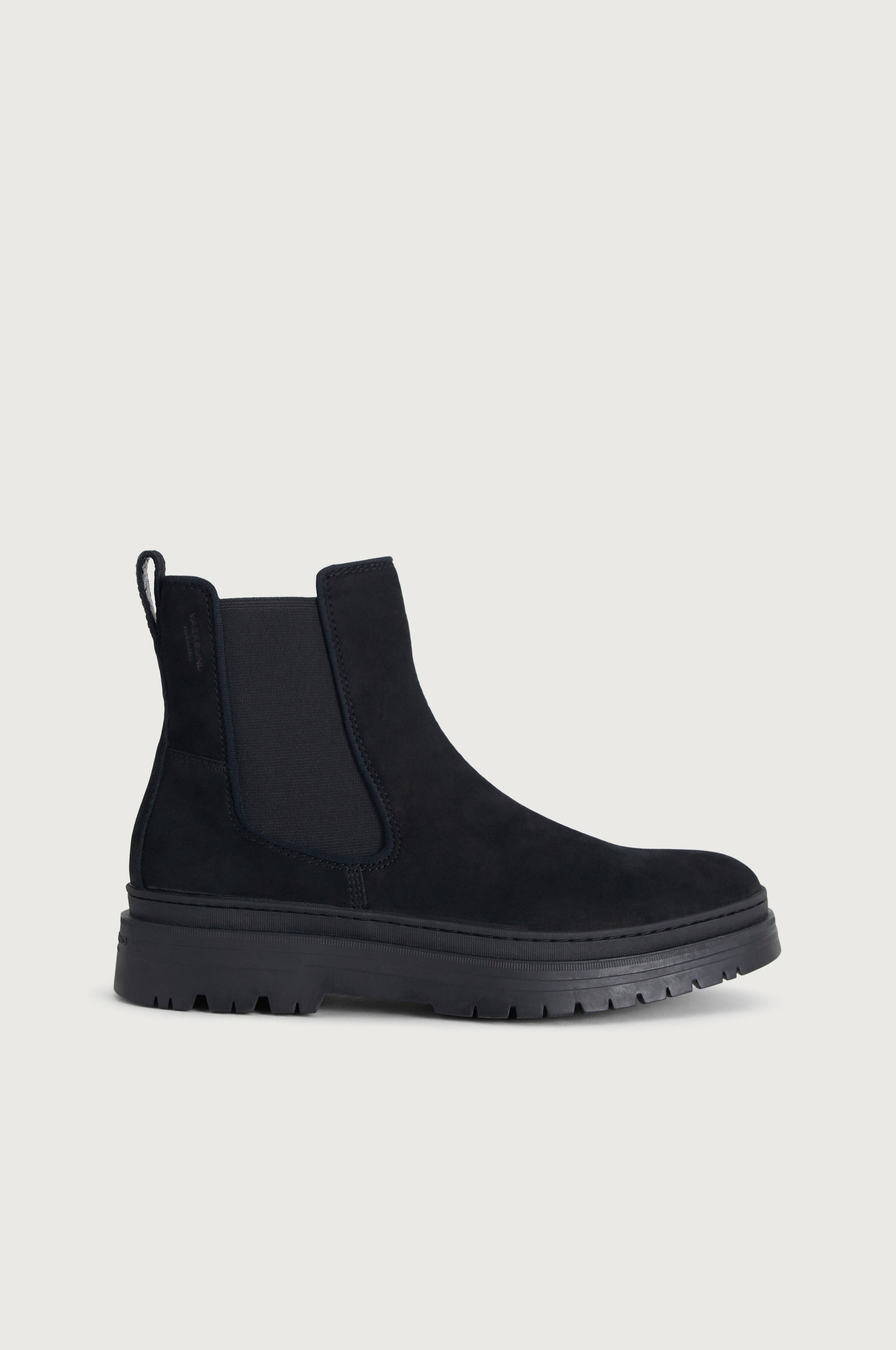 Boots fra Vagabond i nubuck. Bootsene har en yttersåle i gummi og en elastisk kant i hver side som gjør dem enkle å ta på. Drahempe på skaftet.