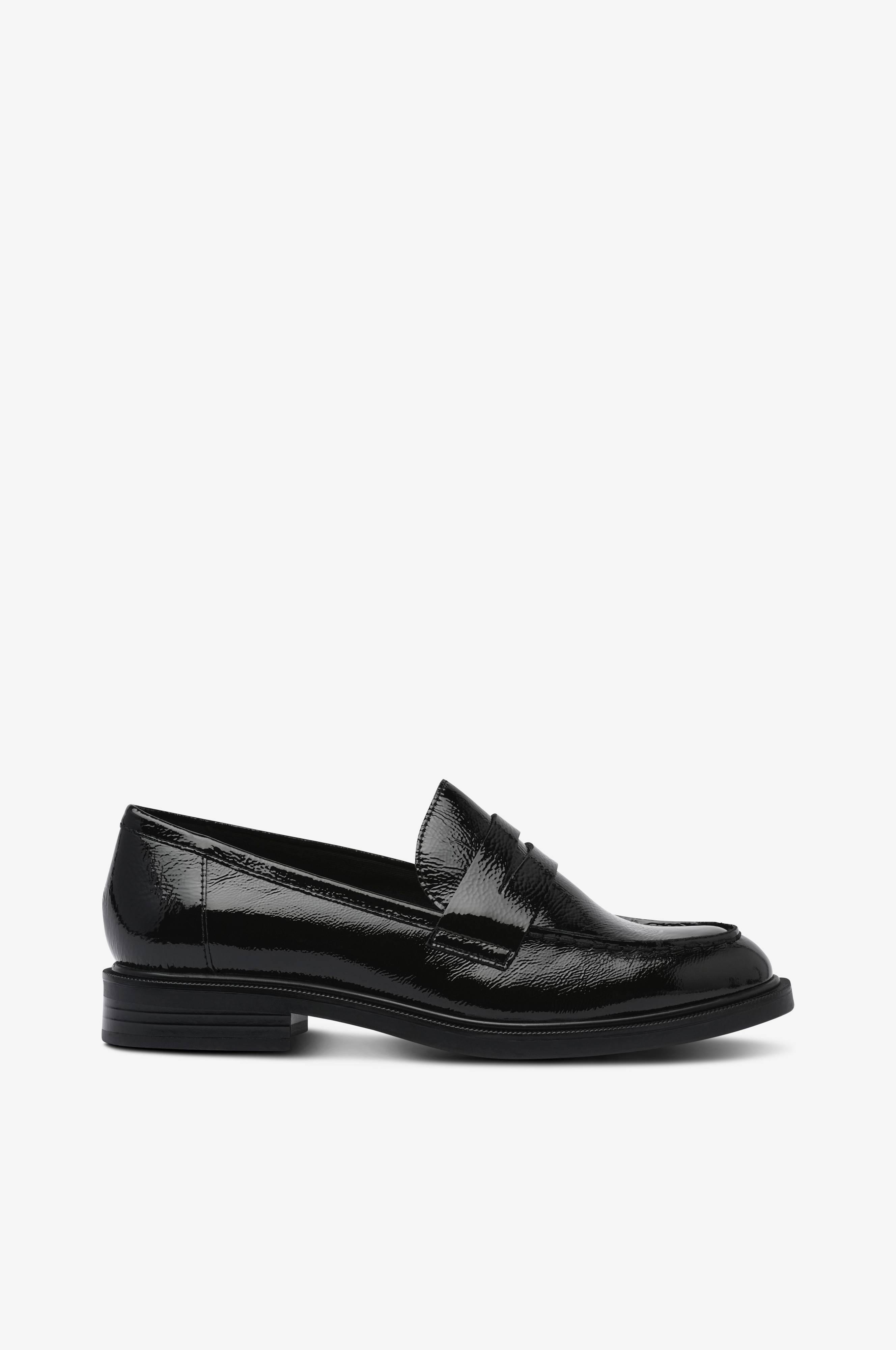 • Klassiske loafers i glatt skinn• Bånd over foten• Tekstilfôr• Innersåle i skinn• Lav kilehæl• Yttersåle i gummi• Hælhøyde: 3 cm