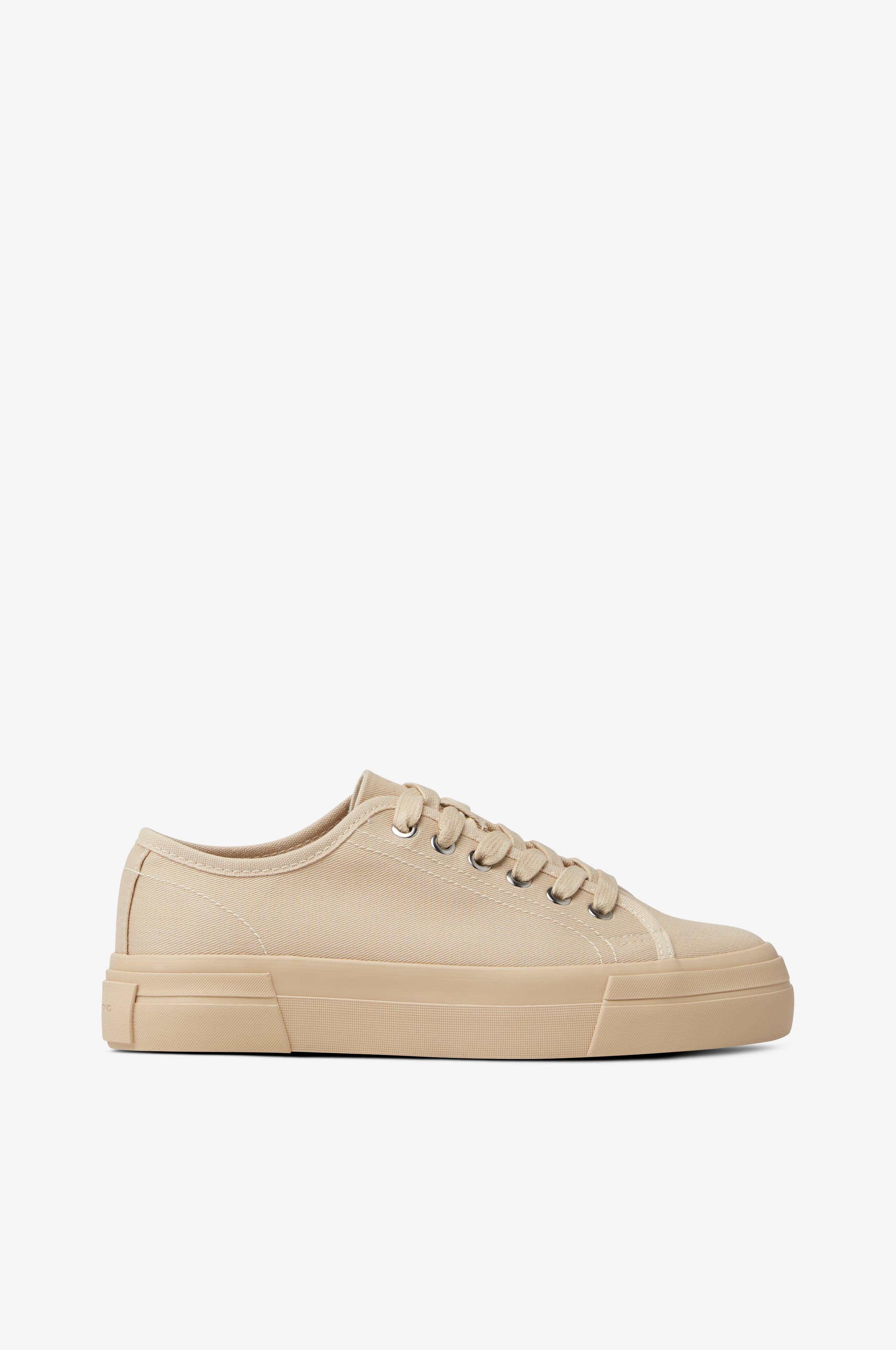 Sneakers med høy såle. Overdel og fôr i tekstil. Voksede, flate lisser. Yttersåle i gummi.