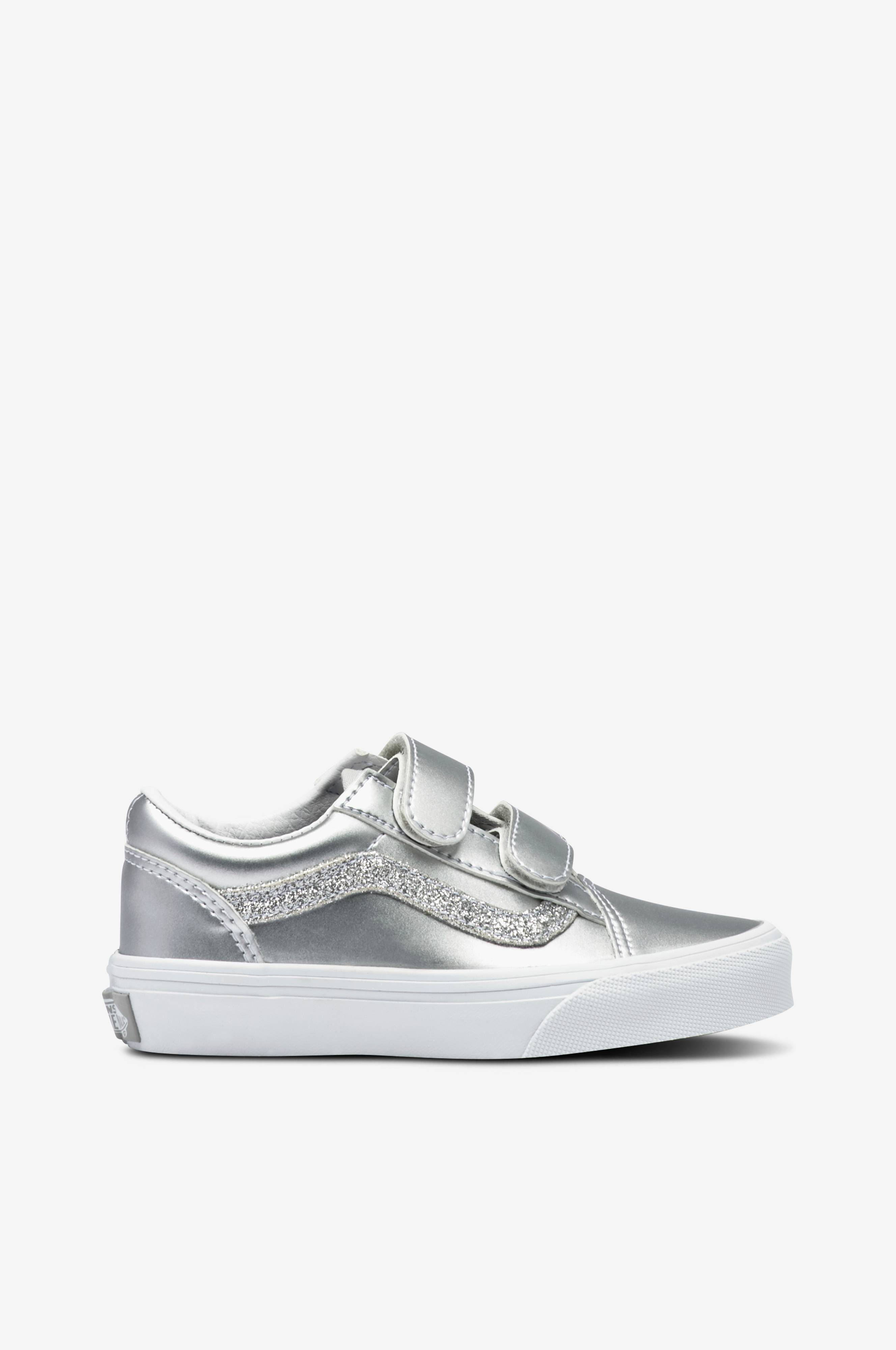 • Sølvaktige joggesko i syntet med glitrende detaljer i sateng i sidene• To justerbare borrelåsbånd• Tekstilfôr• Yttersåle i gummi