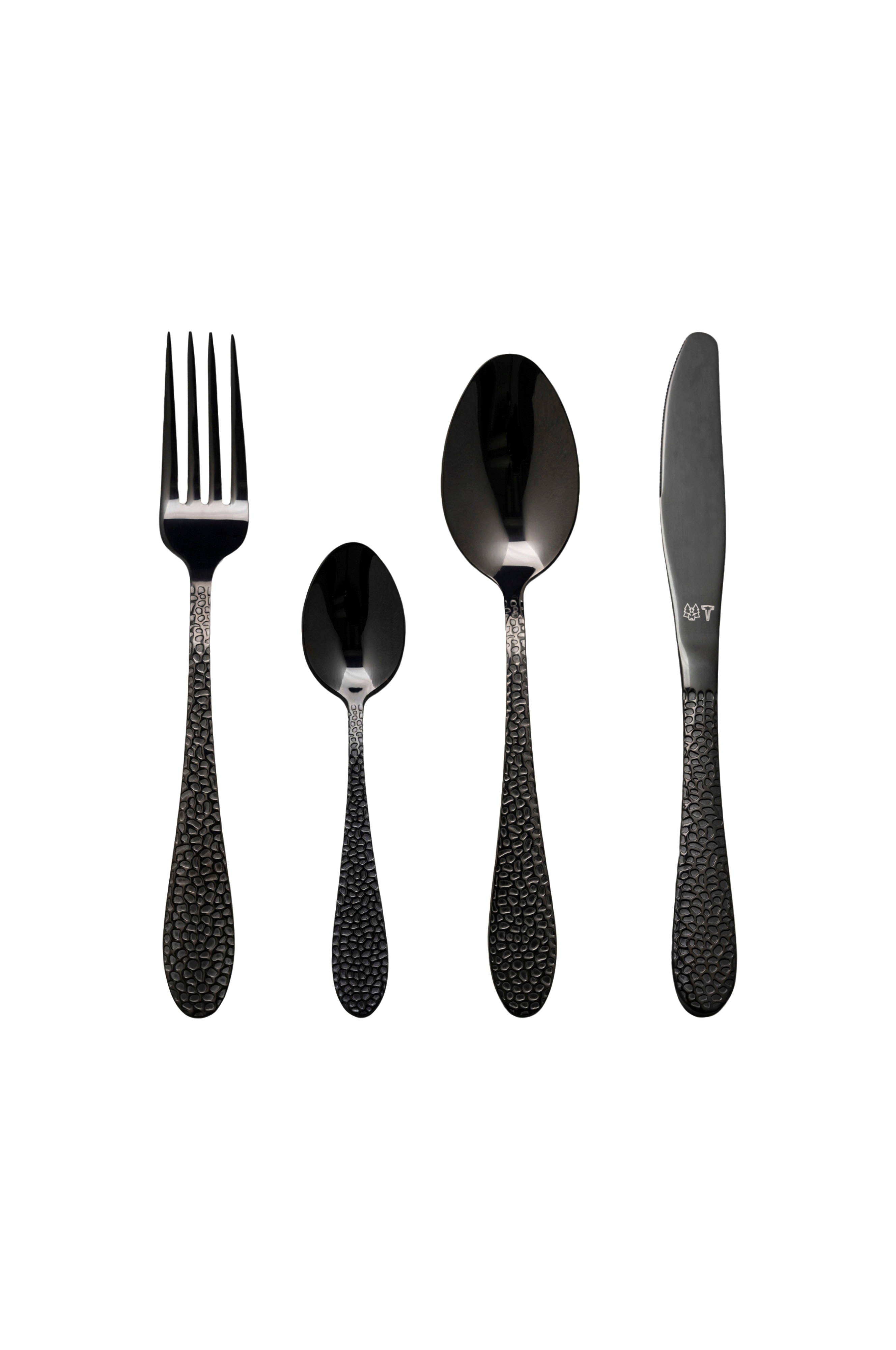Dette er et skinnende bestikksett fra Vargen & Thor med deres ikoniske, hamrede design.