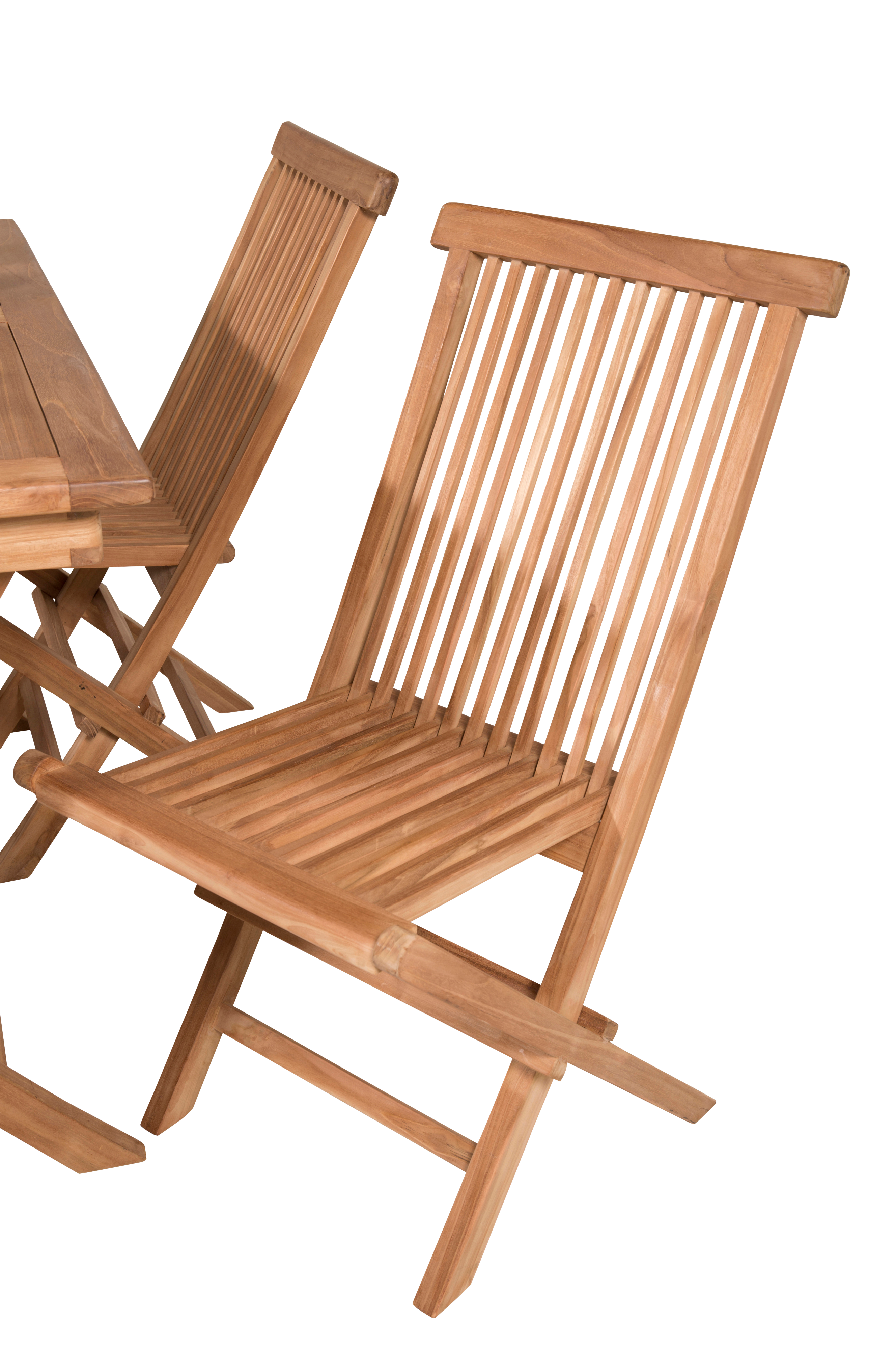 Kaspian spisestol i teak som kan slås sammen for enkel oppbevaring. Mål: Lengde: 60 cm. Dybde: 70 cm. Sittedybde: 43 cm. Høyde: 89 cm. Sittehøyde: 45cm. Selges i 2-pakning.
