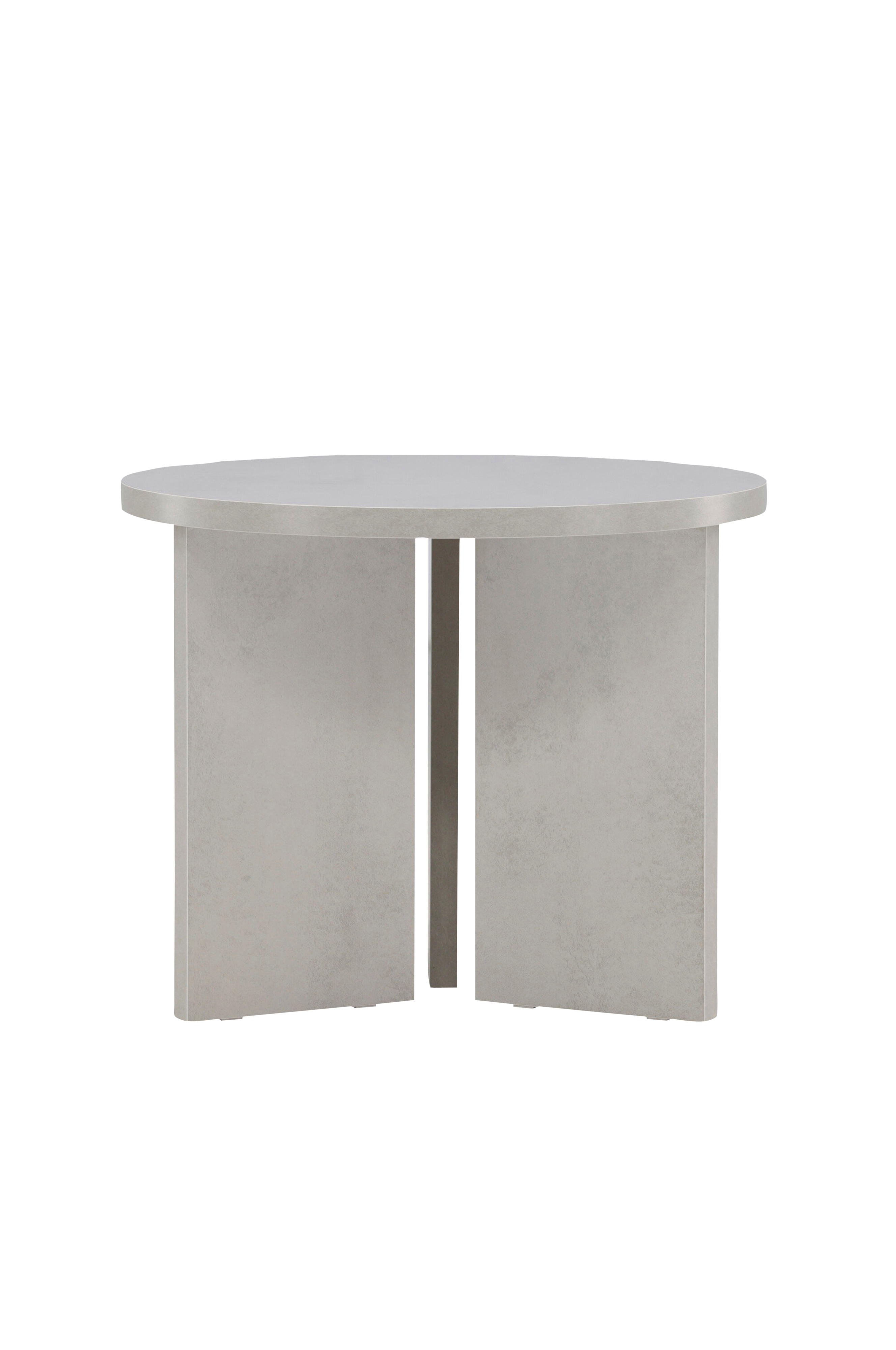 Söderhamn er et rundt salongbord med en diameter på 55 cm, laget av mdf og utført i en elegant sølvfarge. Den slanke bordplaten hviler på tre brede, asymmetrisk plasserte ben som gir bordet et moderne og grafisk uttrykk.