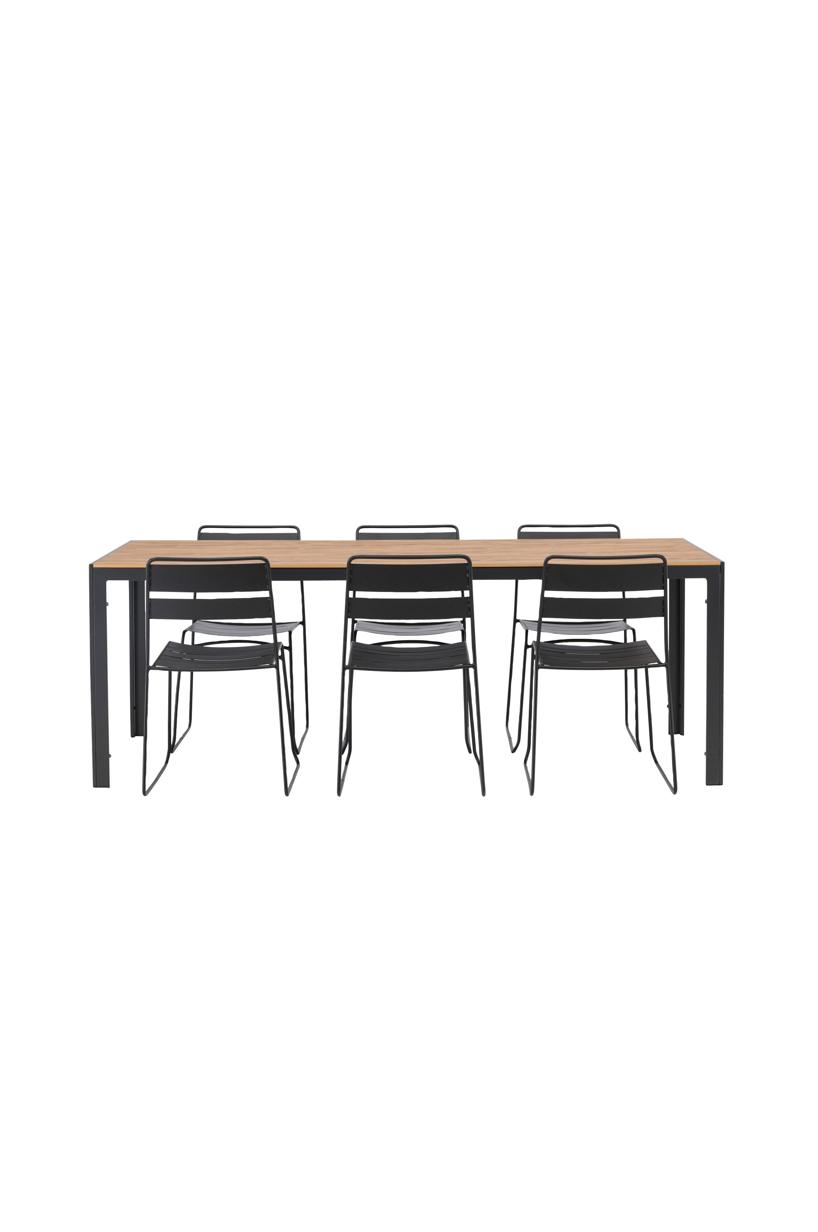 Dekk på til utemiddag i sommer og nyt herlige måltider! Det rektangulære spisebordet Break har rette former i klassisk nordisk design med bordplate i kryssfiner og bordben i aluminium. Her i pen kombinasjon med spisestoler fra serien Lina. Stolen har en minimalistisk design i stål og gir et luftig inntrykk . Sitt bekvemt og nyt hyggelige kvelder utendørs!