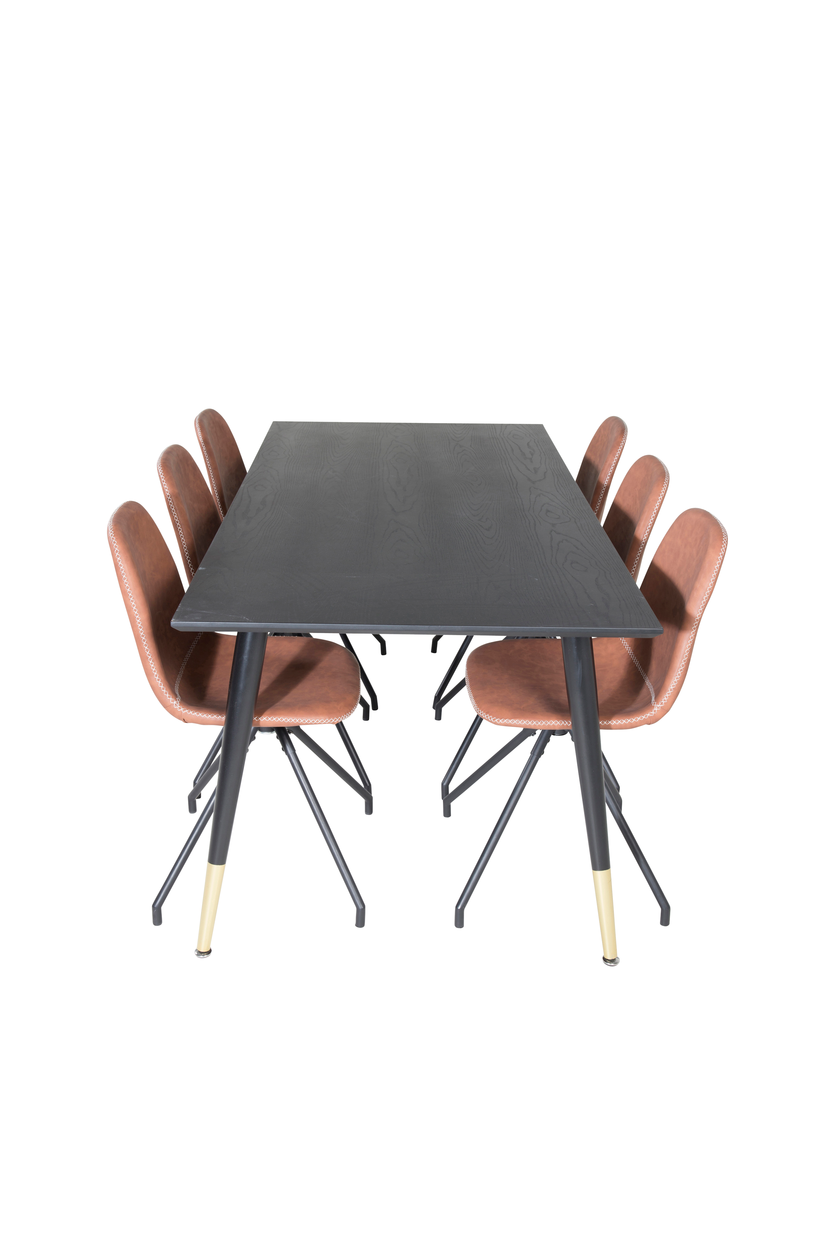 Dipp spisebord med bordplate i MDF og bordben i metall. Matches med 4 Polar spisestoler med snurrefunksjon, sete i kunstskinn og ben i metall. Bord og stol krever enkel montering. Bordets mål: Lengde: 180 cm. Bredde: 90 cm. Høyde: 75 cm. Stolens mål: Sittebredde: 44 cm. Sittedybde: 39 cm. Sittehøyde: 48 cm.