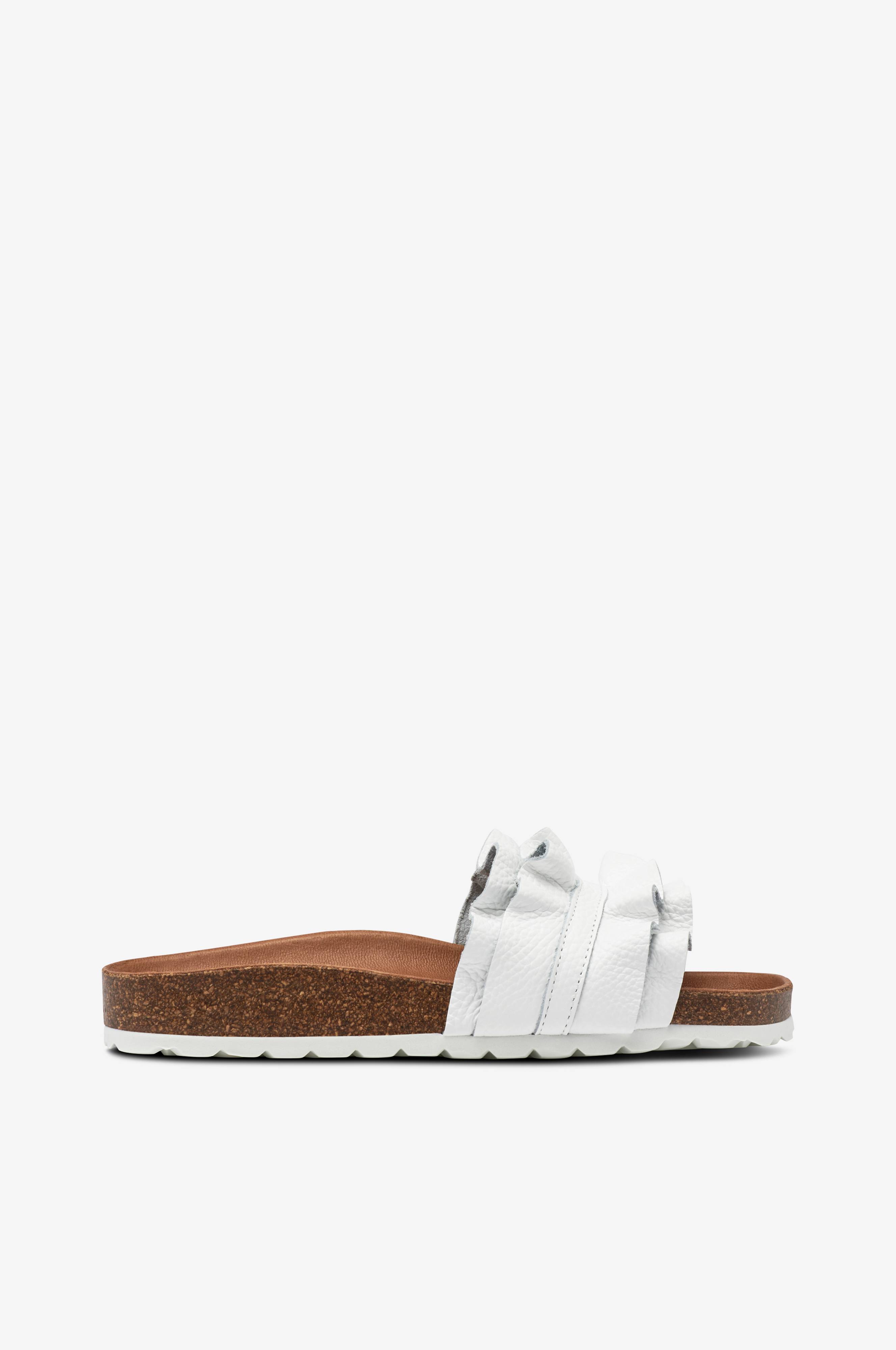 • Stropp i skinn med volangdetalj• Formet, skinnkledd fotseng