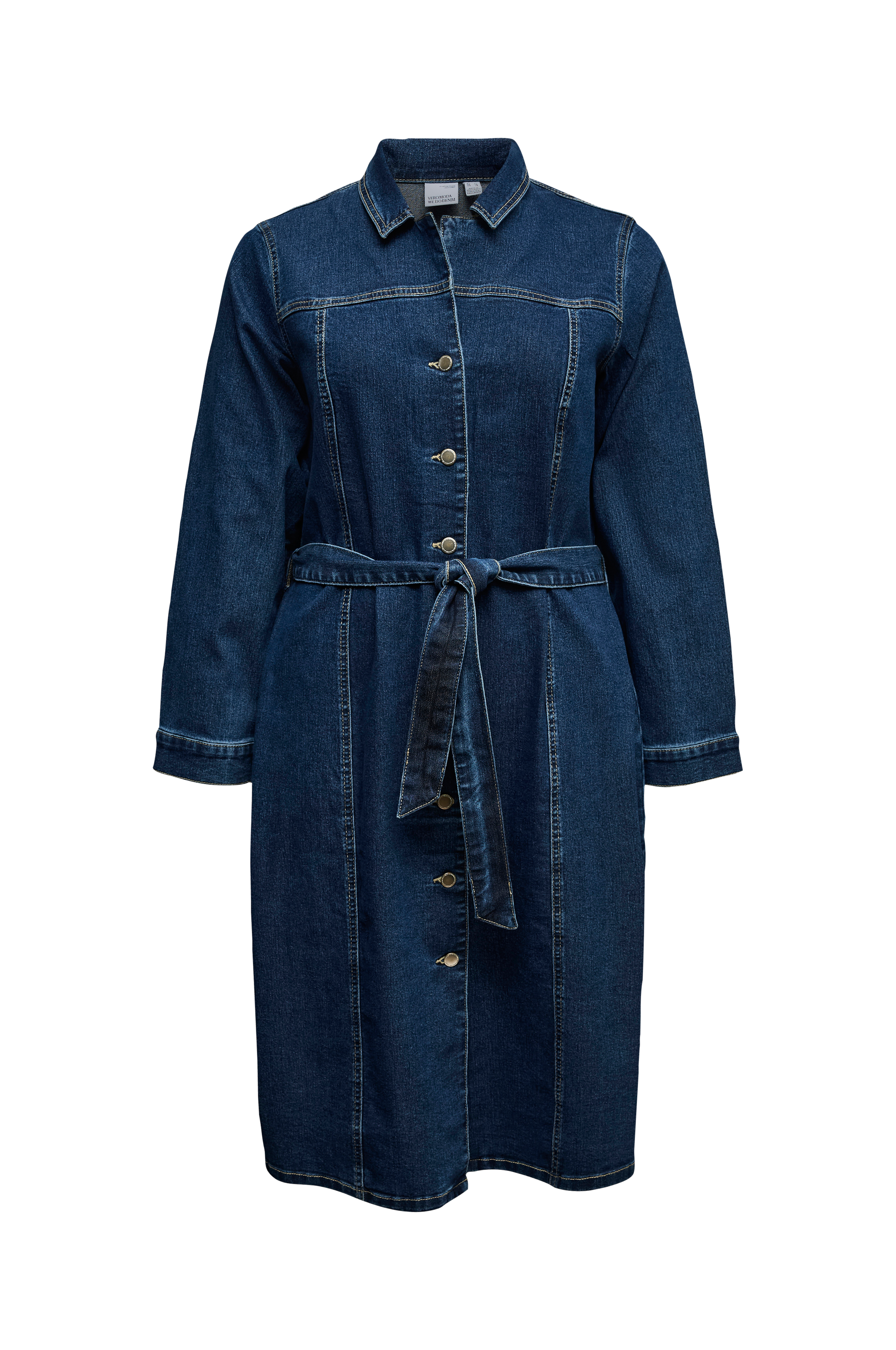 • Langermet kjole i stretch denim• V-formet hals med krage• Knapper hele veien fram• Knytbart belte ved midjen• Lengde: 117 cm i størrelse 44