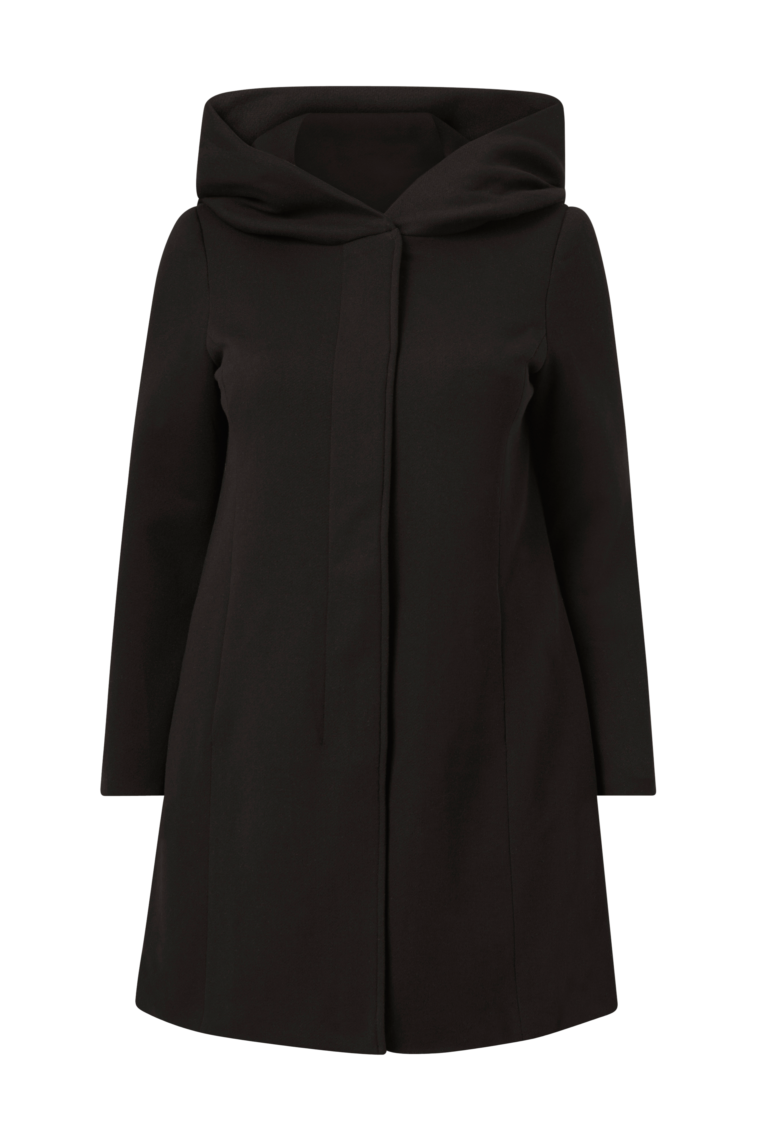 • Plusstørrelser• Rett modell• Frontknepping med skjult glidelås og trykknapper• Fôret hette• Innfelte lommer• Tynne skulderputer• Fôret• Lengde: 90 cm i størrelse 44