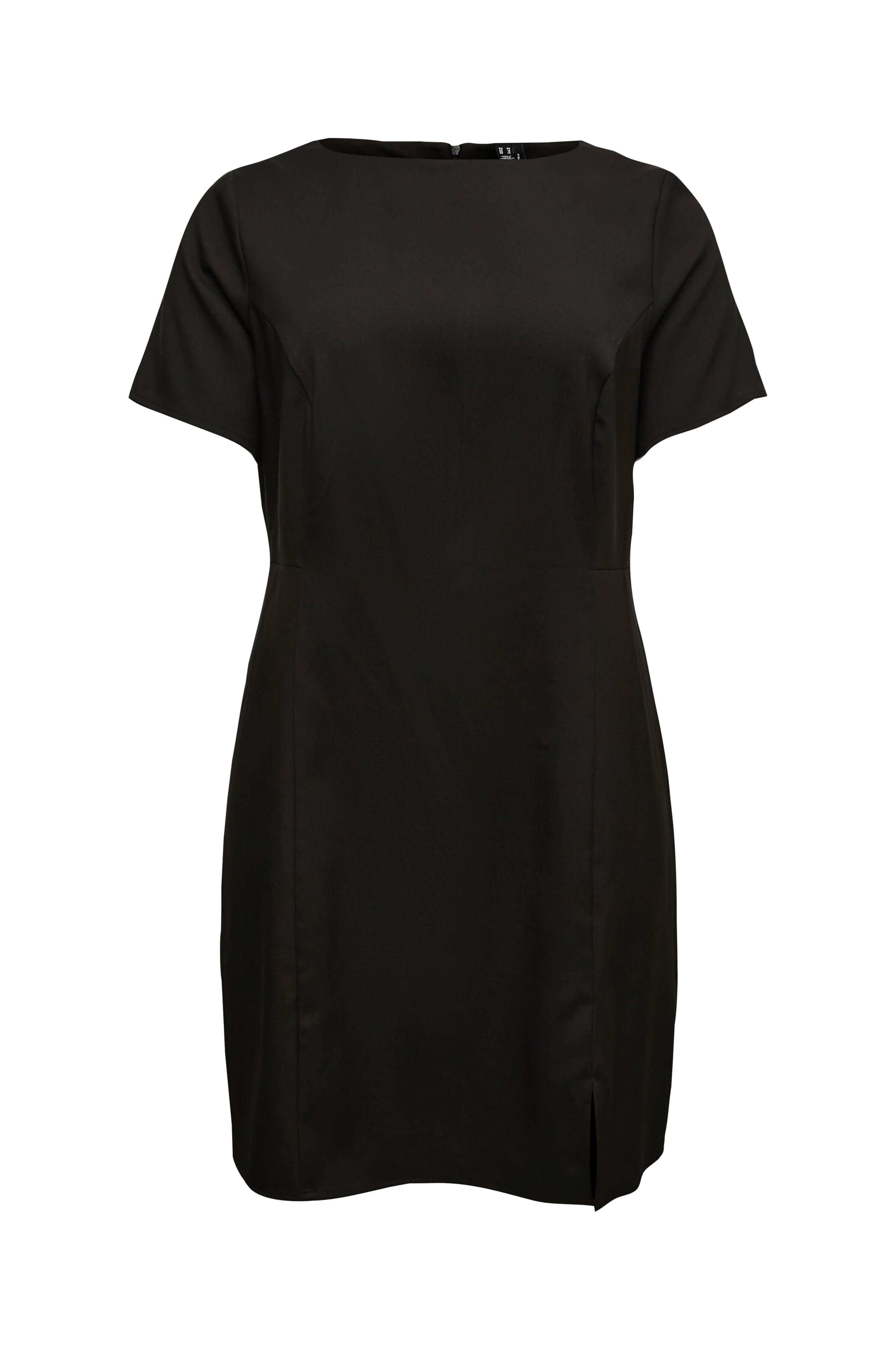• Kort, myk kjole• Rund hals• Korte ermer• Glidelås i ryggen• Splitt på bunnen• Lengde: 93 cm i størrelse 44• Pluss-størrelser