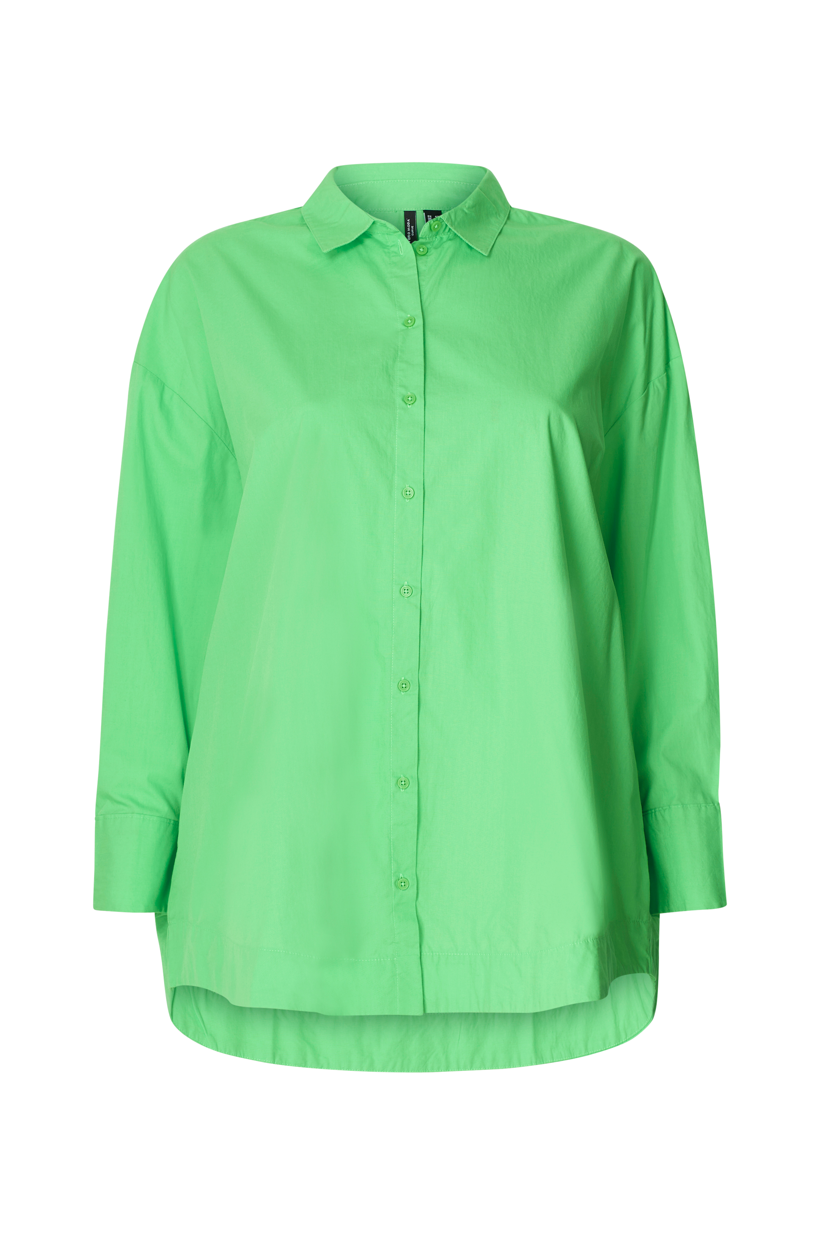 • Plusstørrelser• Rett, bred modell• Knappstolpe foran• Langt erme med mansjett• Avrundet hem med lenger backing