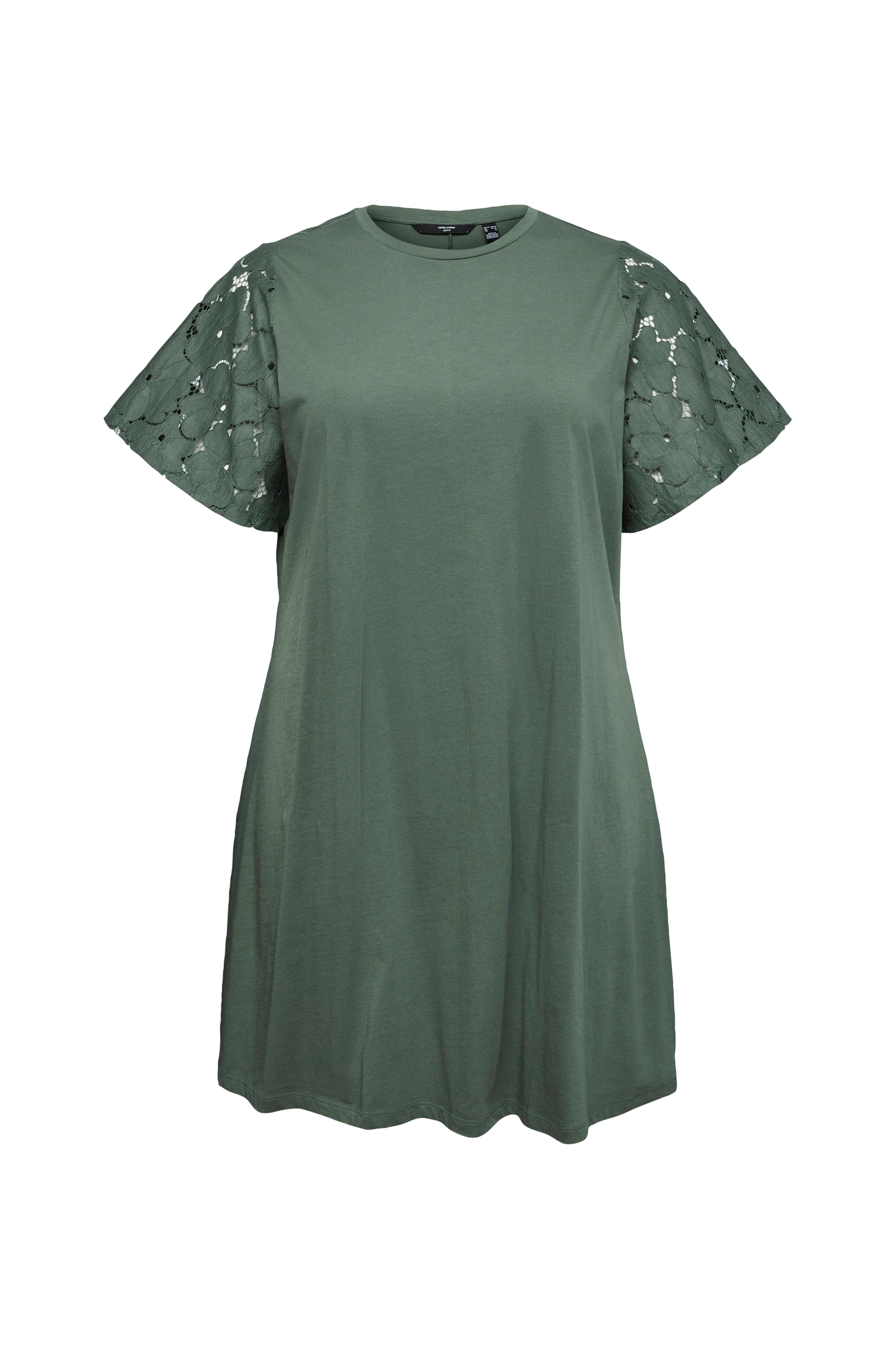 • Myk kjole• Rund hals• Korte ermer med hullbroderi• Pluss-størrelser• Lengde: 97 cm i størrelse S