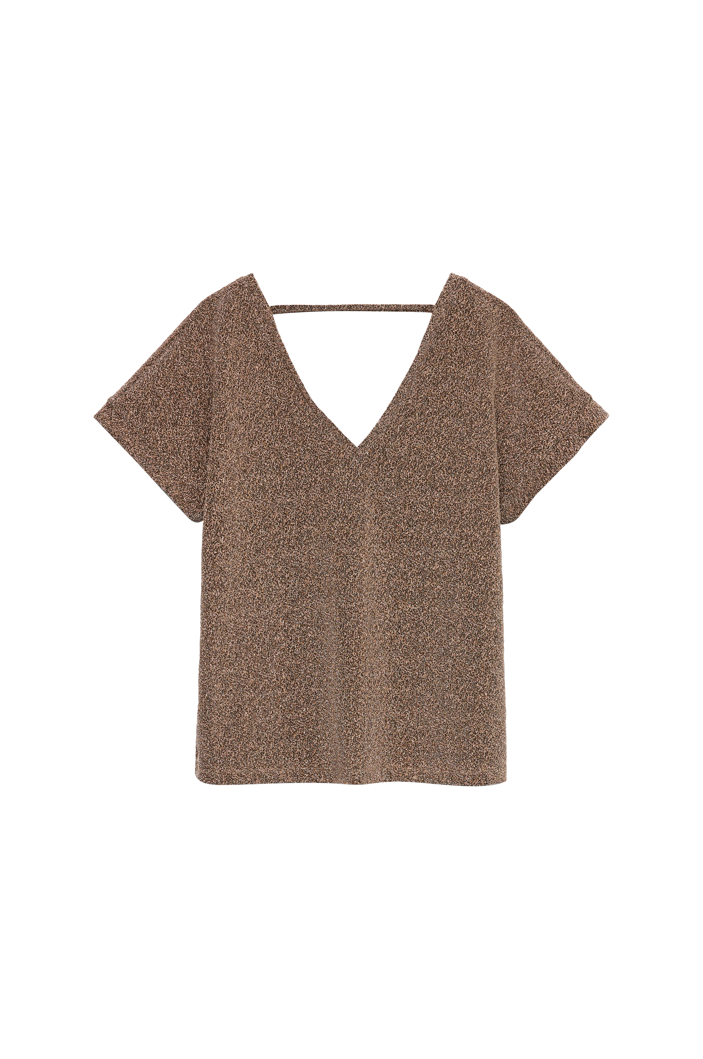 • Glitrende, stretchy topp med korte korte ermer• V-formet hals foran og bakpå• Pluss-størrelser
