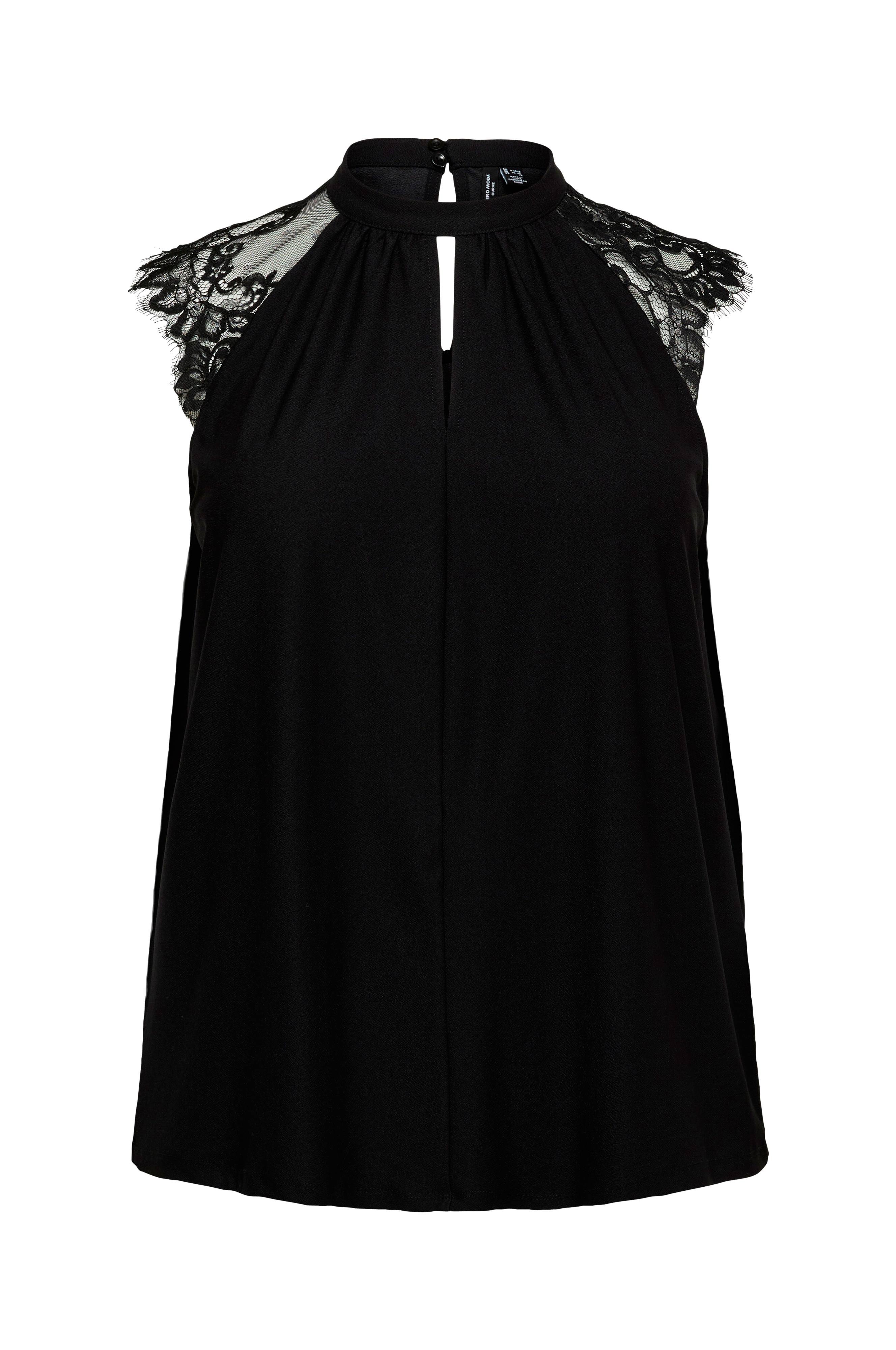 • Ermløs topp med blondedetalj over skuldrene