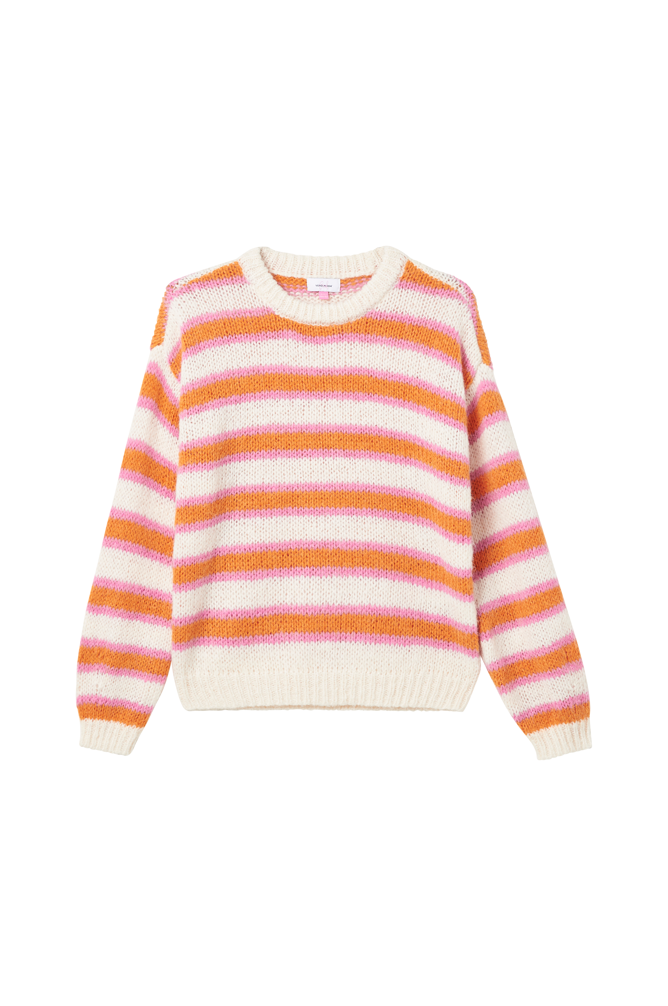 Strikket genser i myk kvalitet. Løs passform og lave skuldersømmer.