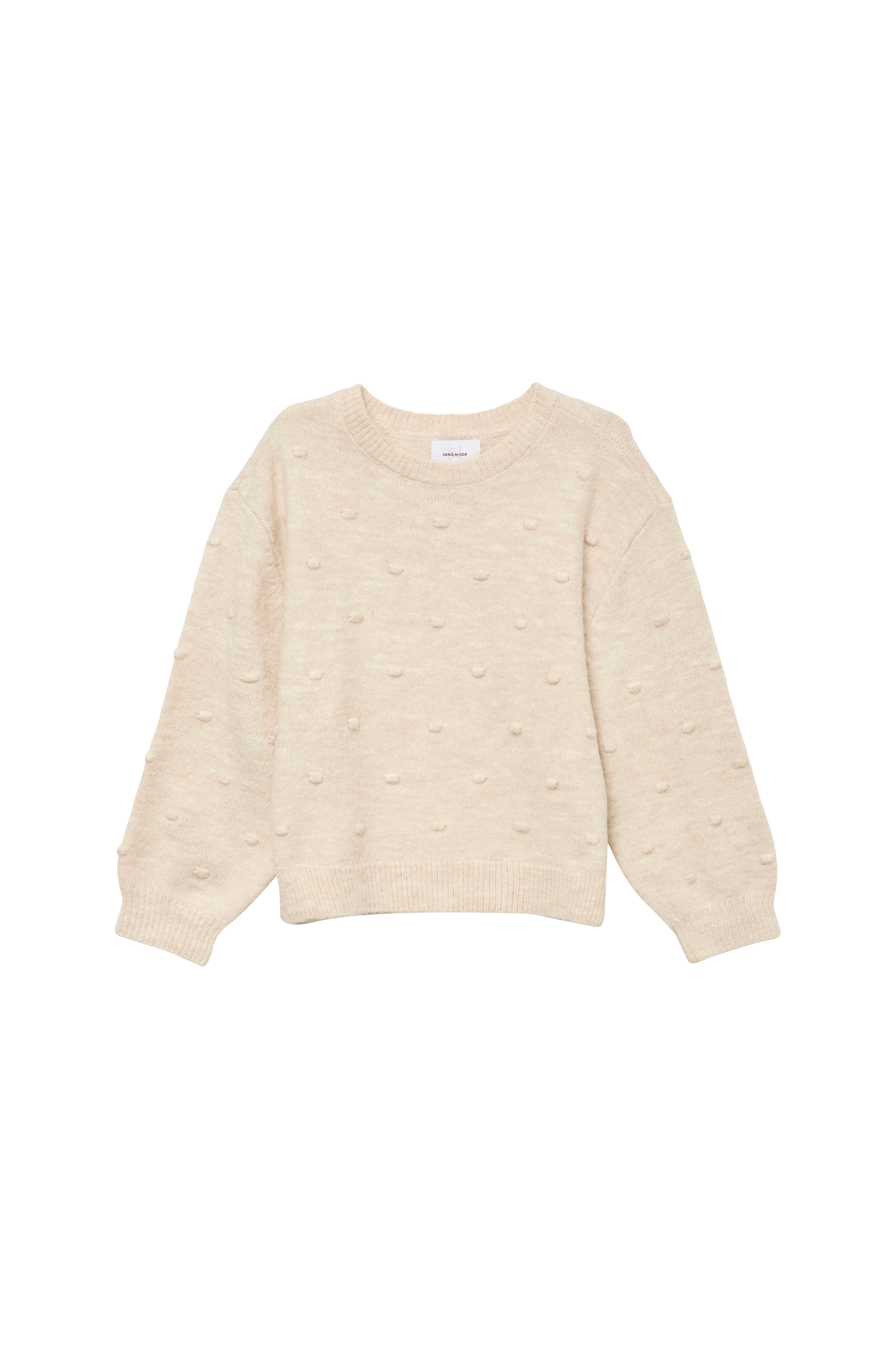 • Finstrikket pullover med strukturprikker• Rund, ribbet hals• Lange ermer med utringede skuldre• Ribbet mansjetter i ermeslutten og i nedre kant