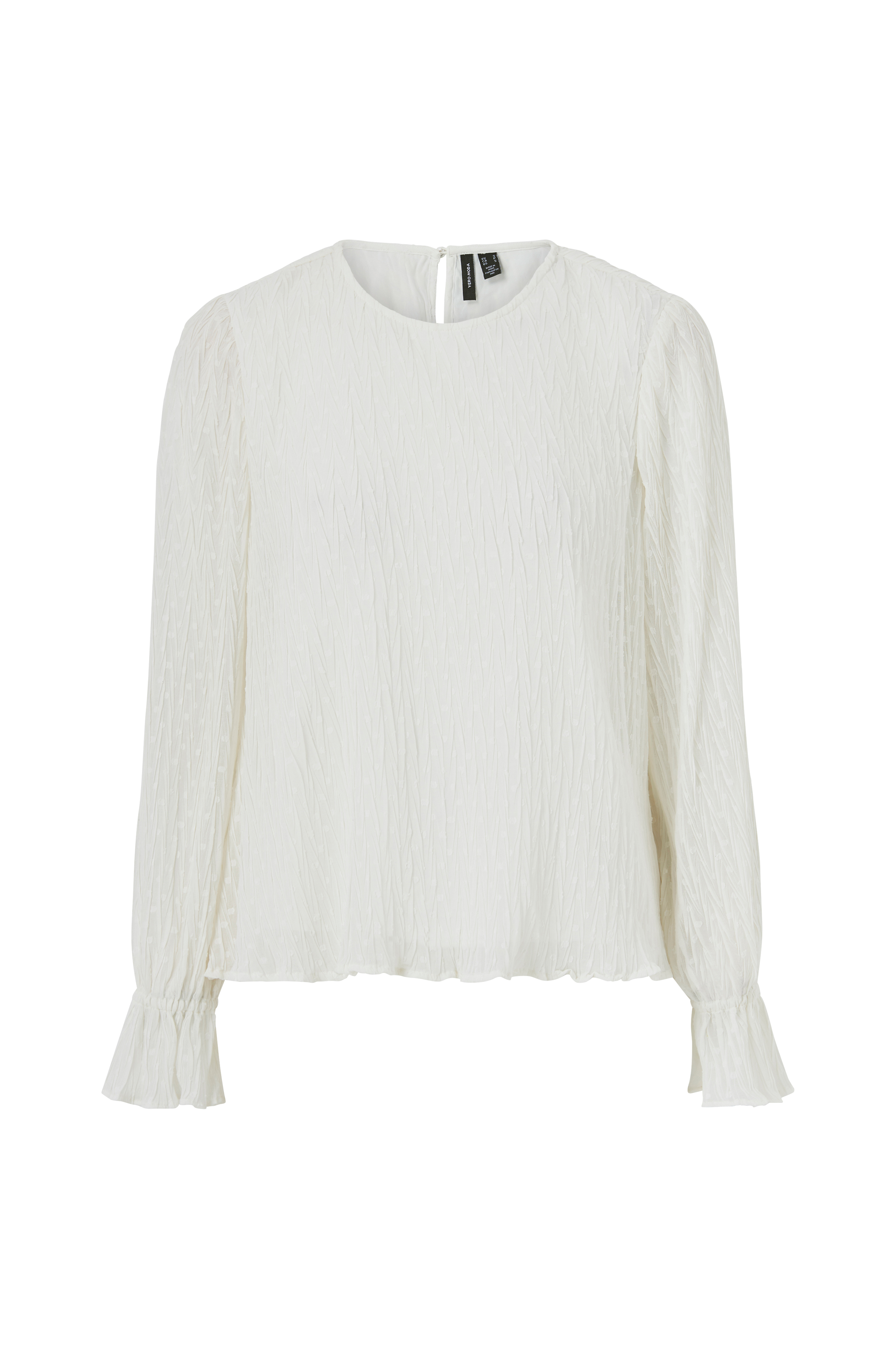 Bluse vmAlberte L/S Pleat Top fra Vero Moda i krinklet chiffon med teksturmønster. Lange ballongermer med rynkede skuldersømmer og strikk med volang i ermekantene. Rund hals med splitt og kledd knapp i nakken. Fremstilt i vevd kvalitet.