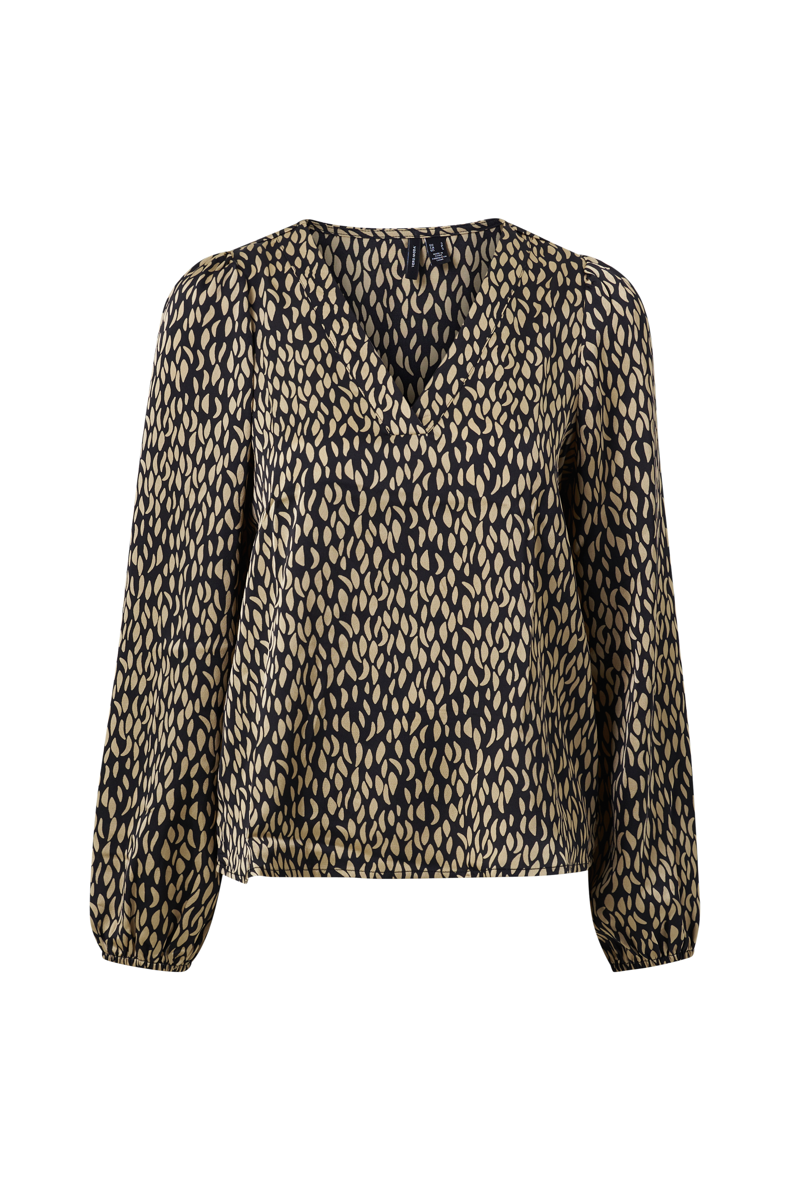• V-formet hals• Brede bobleermer med elastisk strikk i ermeslutten